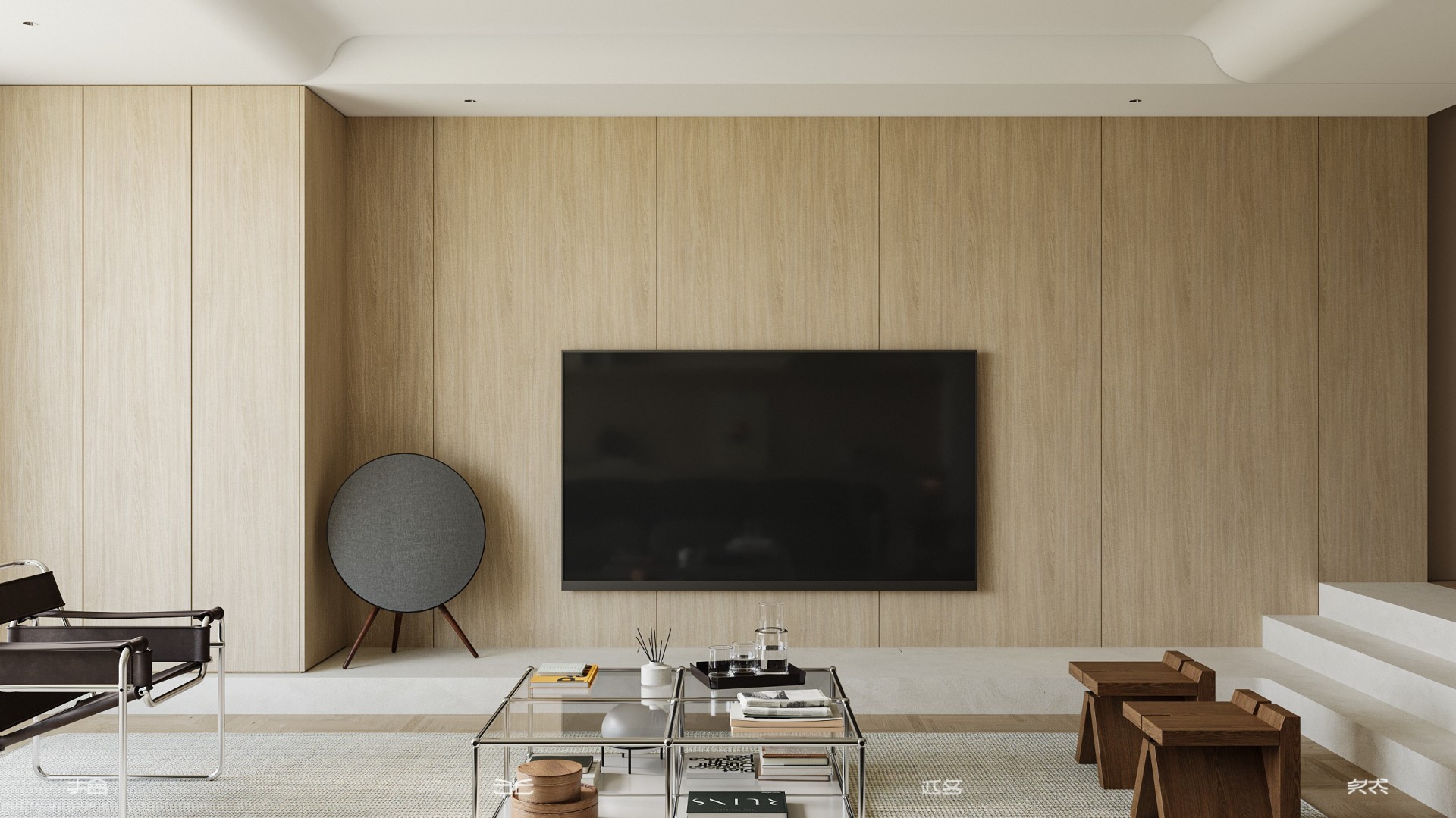 通透材质与错层美学,极简原木住宅的克制氛围