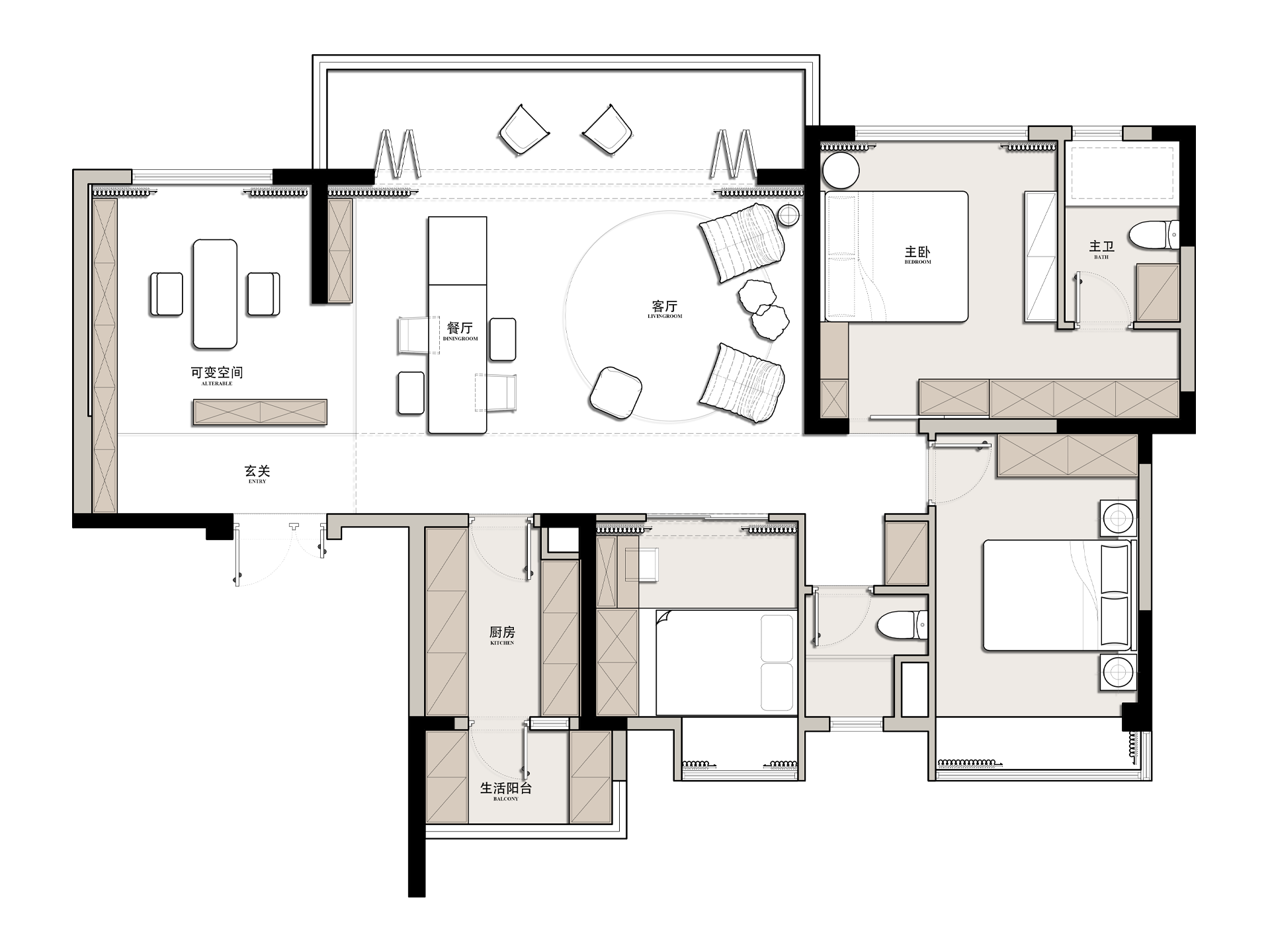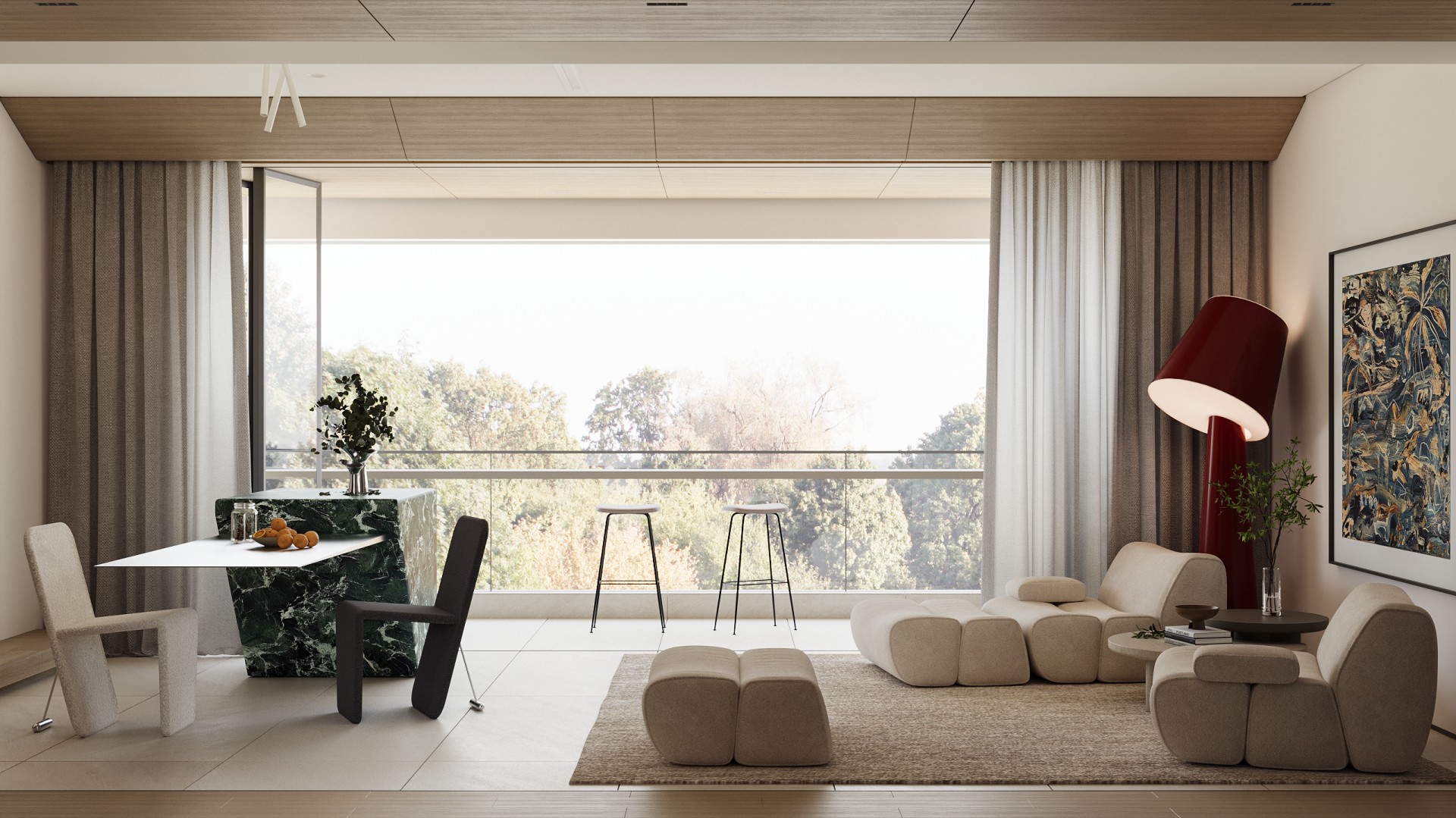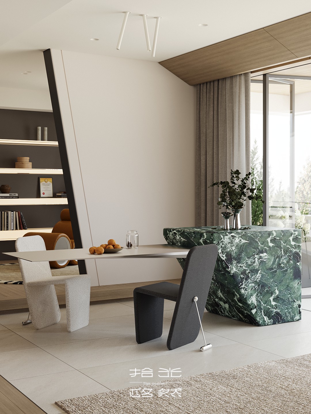 云河颂 180㎡ x 极简线条与中古美学的共生,解构主义视角下的功能拓扑学