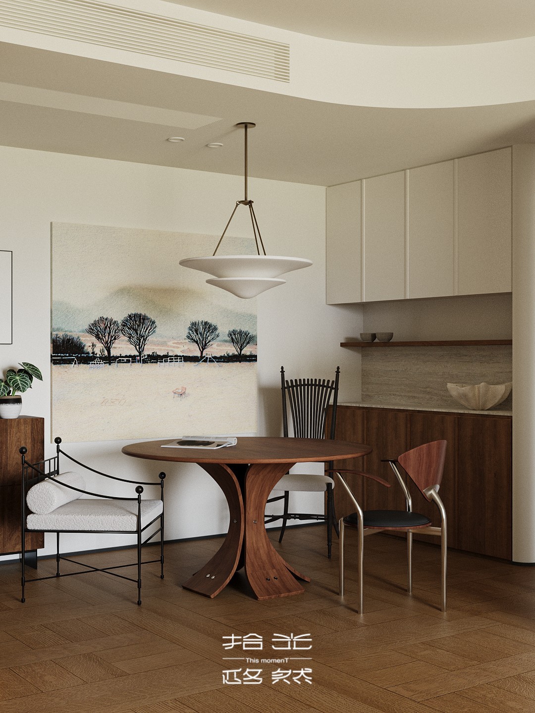 都市生活中,人们愈发渴望一种“润物细无声”的生活哲学——无需喧嚣的宣告,却能通过细腻的设计语言与生活细节,让自然、复古与松弛感悄然渗透于空间肌理。正如中国传统文化中“大音希声”的智慧,真正的美学无需矫饰,而是以谦逊的姿态,将自然气息与时间沉淀的韵味,融入每一寸生活场景。 本案以“烟火气”为情感基底,以“轻复古”为美学载体,构建了一处兼具温度与呼吸感的松弛场域。设计中摒弃繁复的视觉符号,转而通过自然材质的共生、复古元素的克制提炼,以及光影与留白的叙事,让空间如同一首未完的诗,于细微处传递“无声胜有声”的疗愈力量。