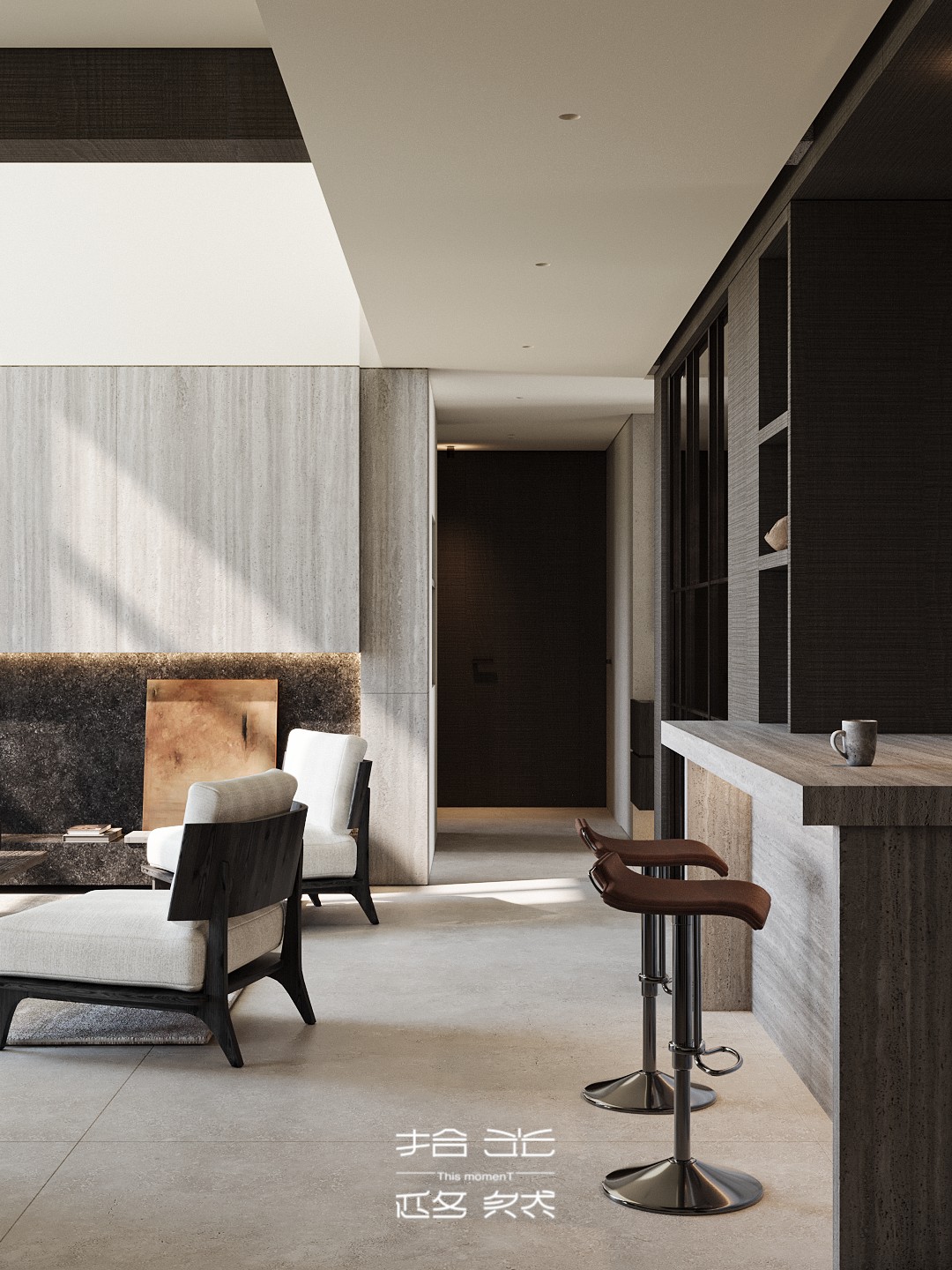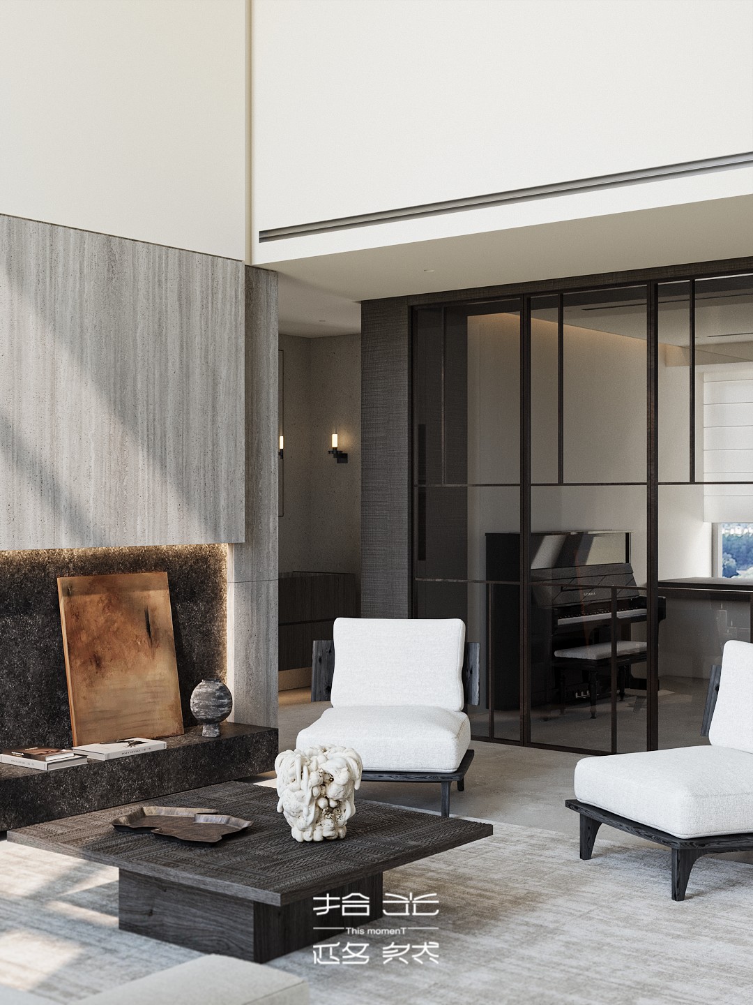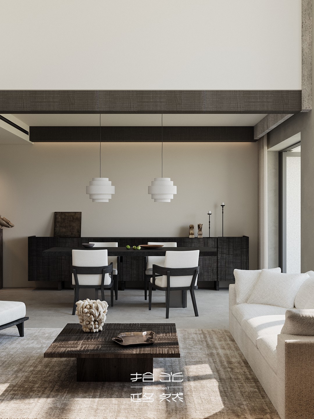 建筑的诗意,往往藏在对自然的邀约里。这座挑空大平层以超高层高为序,将巨幅落地窗化作取景框,让天光云影成为每日更迭的天然画卷。当晨曦穿透玻璃漫过地面,暮色裹挟着城市灯火流淌而入,空间便成了承载时光流转的容器,无需多余装饰,自然的韵律已是最美的片段。