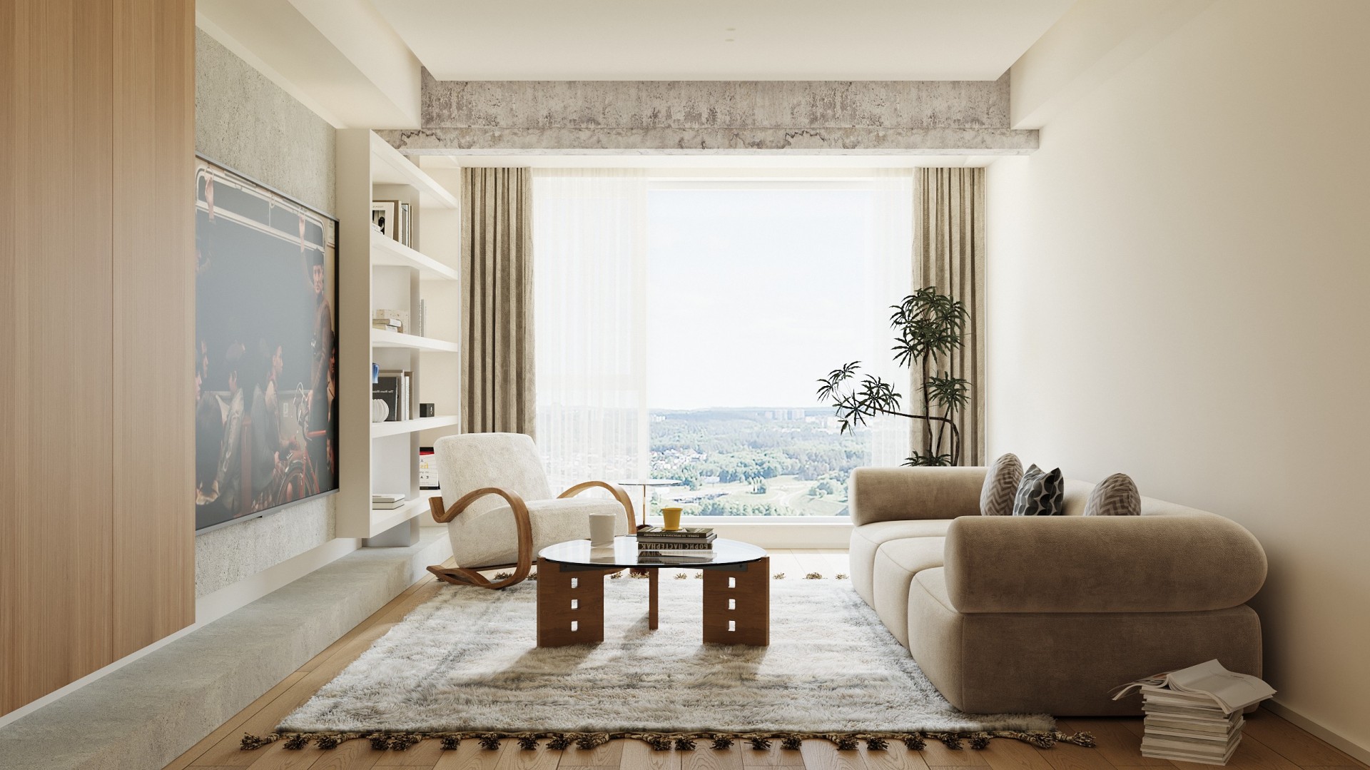 把松弛感焊在客厅!原木 + 微水泥,装出会呼吸的治愈家