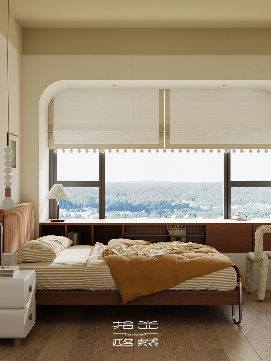 在空间营造的语境里,低饱和色系是温柔的开场白。当我们将目光聚焦于这组案例,会发现它像是一场关于治愈与松弛的叙事 —— 没有浓墨重彩的喧闹,以米白、浅棕等低饱和色调为基底,如轻柔的织物包裹空间,从卧室的静谧氛围到客厅的开阔质感,每一处都在诉说:家,本就是让人卸下疲惫、拥抱松弛的治愈场域 。