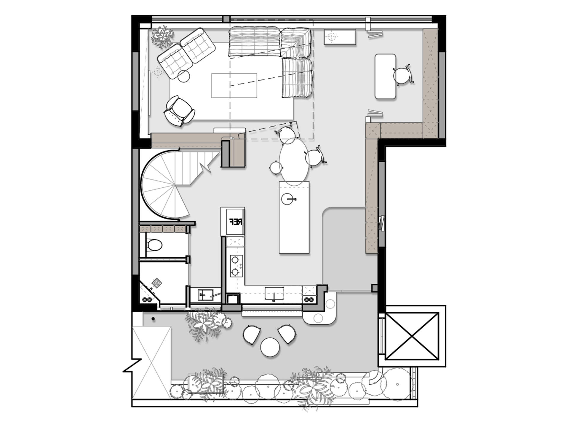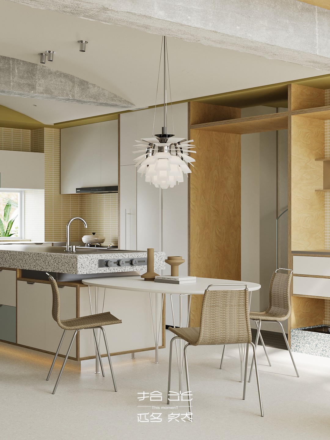 当现代简约线条邂逅复古家具的柔软弧度,正用「混搭」魔法,为都市居住写下新注解。开放式布局串联起客厅、餐厨与休闲区,斑驳水泥梁与暖木色柜体对话,老物件与新潮单品共处,在看似随性的组合里,藏着对「自然松弛感」的精准拿捏 —— 让家既是容纳生活的容器,也是随时能停靠的温柔港湾,每一眼、每一步,都能撞见治愈日常的小确幸 。