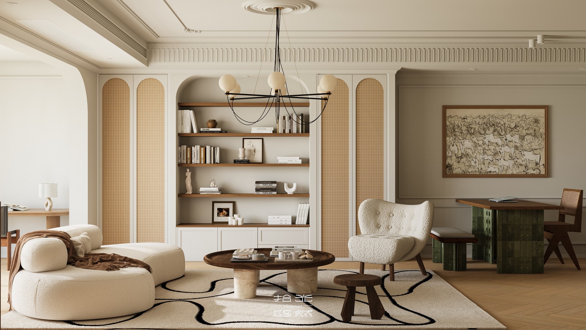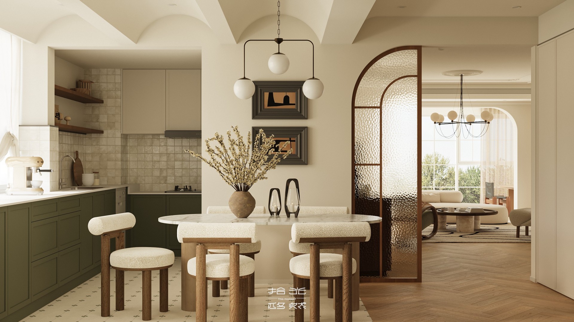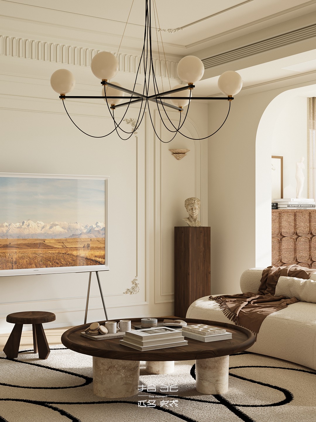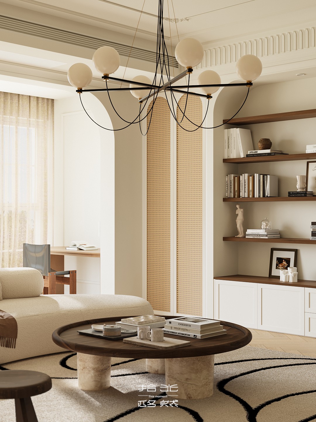 回溯家居设计的初心,终是为生活造一方「自在容器」。本案以「简」为底色,让线条、色彩都卸下繁杂,像宋时文人案头的素笺,留白处尽是呼吸感。 阳光漫过弧形窗,家具成了生活的配角 —— 摇椅晃着闲散时光,圆桌盛着相聚烟火,连吊灯垂落的光影,都在轻声说:家该是让心落脚的地方,简单、自在,才是生活最本真的模样 。