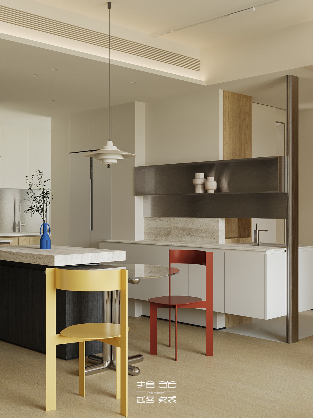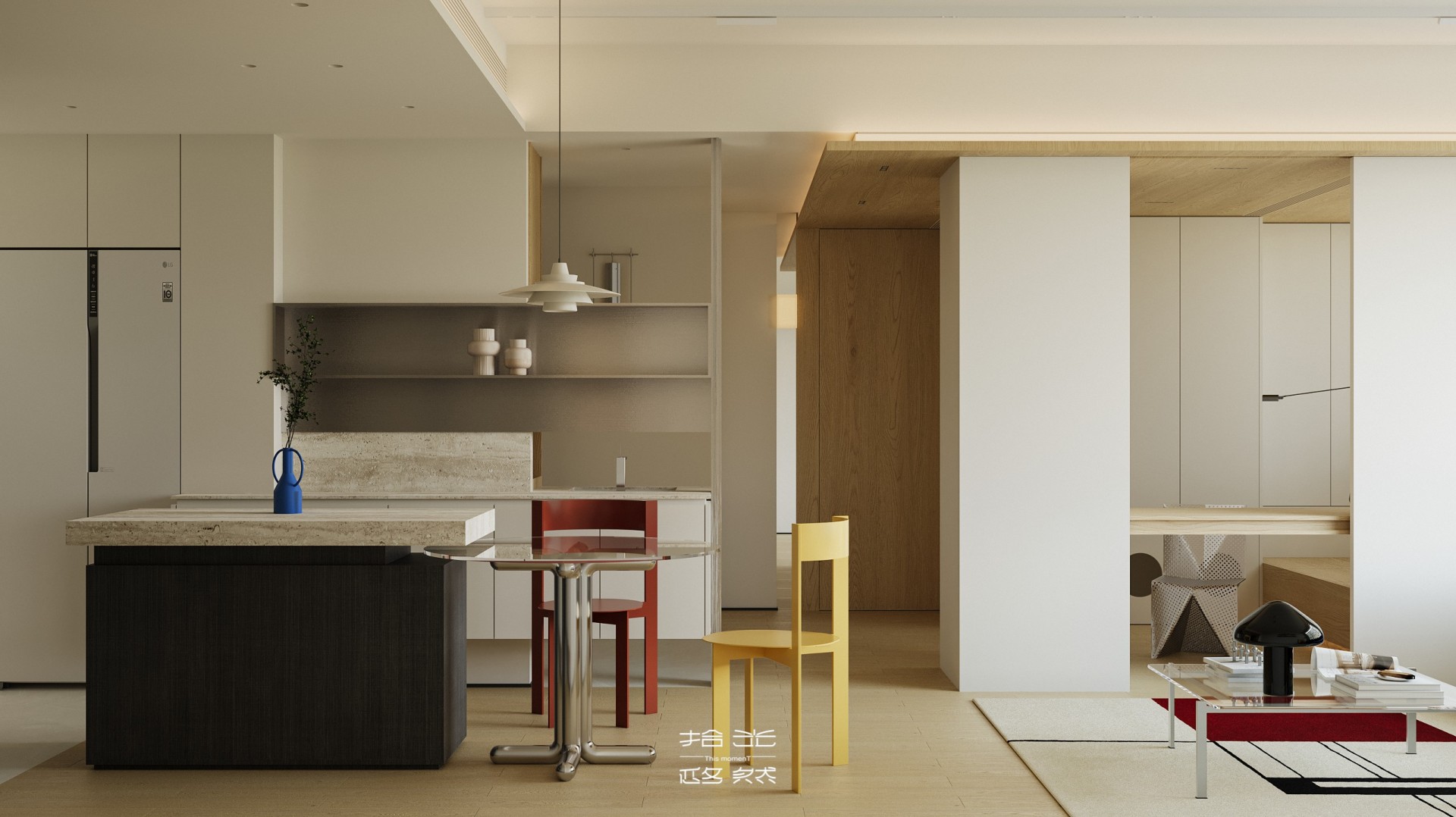 家的本质,该是让人卸去纷扰的「松弛容器」。本案以简为笔,在空间里写下最本真的生活诗行:无繁杂装饰的墙面,是岁月的留白。撞色家具像生活的注脚,跳脱出鲜活气息。连光影漫入的轨迹,都藏着「自在生长」的温柔逻辑。 当我们把目光从浮华收回,会发现这方素净天地里,松弛感早已悄悄扎根 —— 晨起有柔光吻过餐桌,暮归有沙发拥住疲惫,生活的本味,正在这「简而不空,素而有灵」的场域里,缓缓流淌 。
