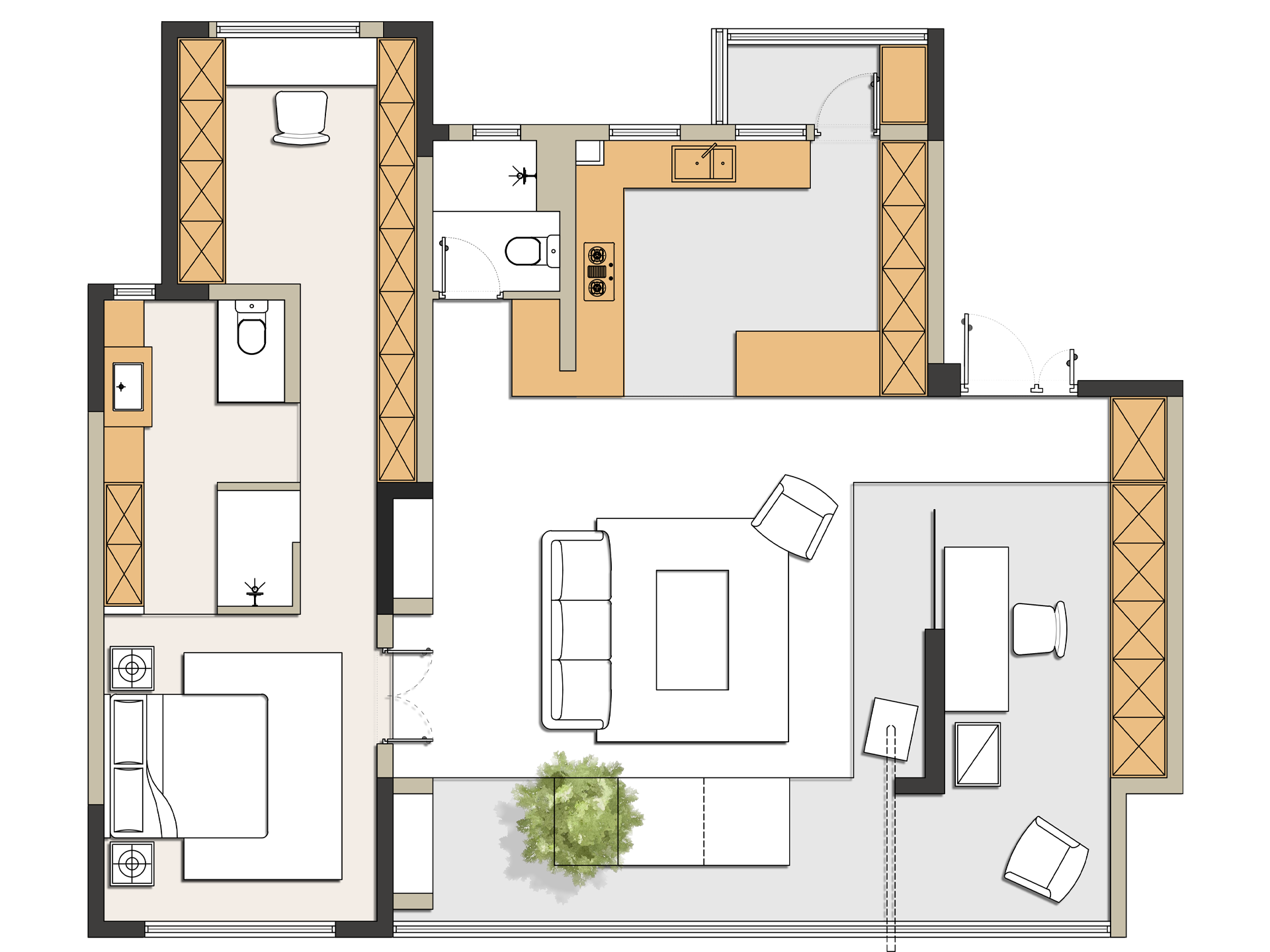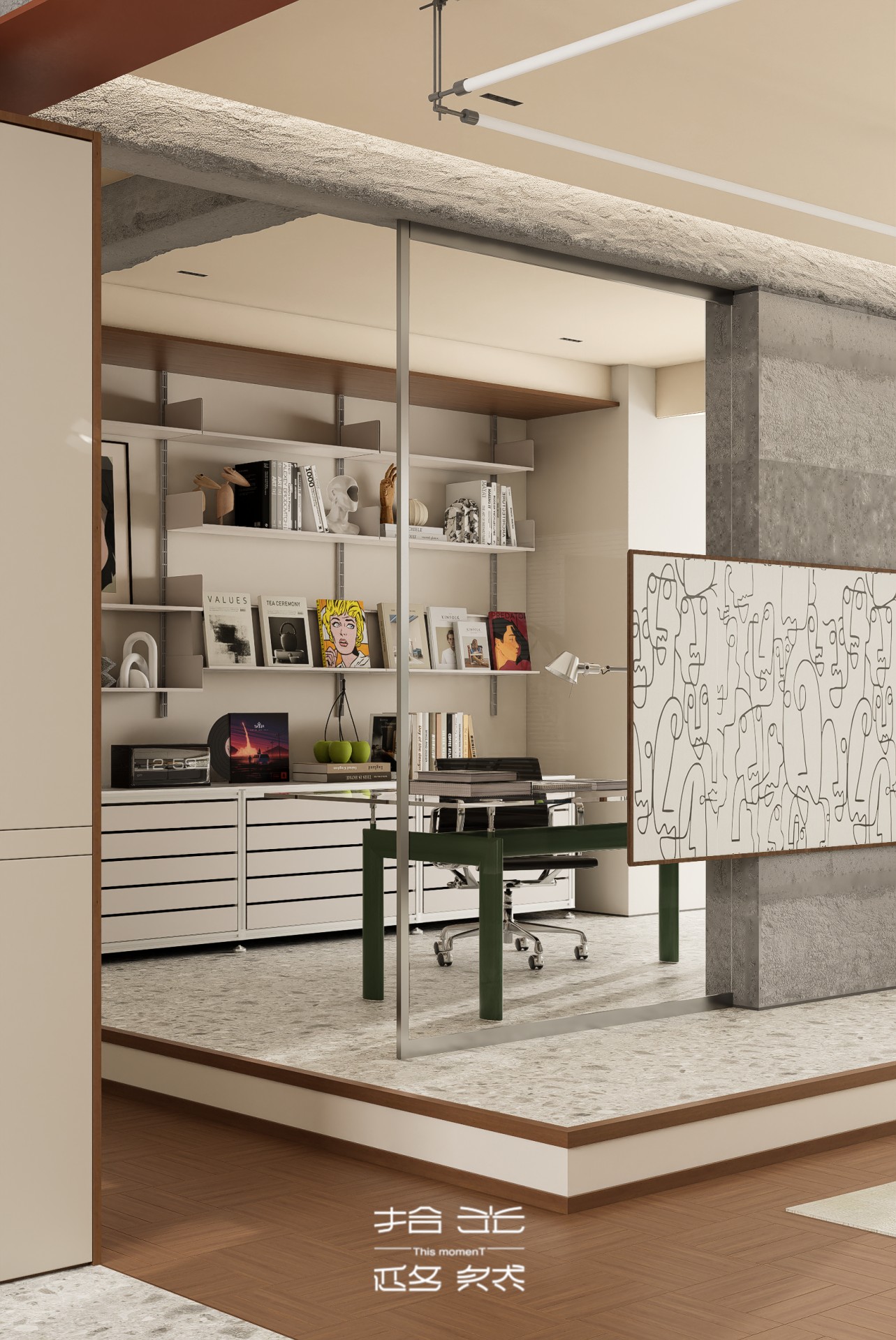 家,不该被功能区框住。这套设计,用开放布局打破客厅、书房、休闲区的边界,让空间自由生长 。原木与水泥碰撞、绿植与艺术挂画呼应, “回归本真” + “混搭出独特” 的巧思,把松弛感揉进每一寸,让家成为能随意切换生活场景的自在容器,进来就想赖着不走。