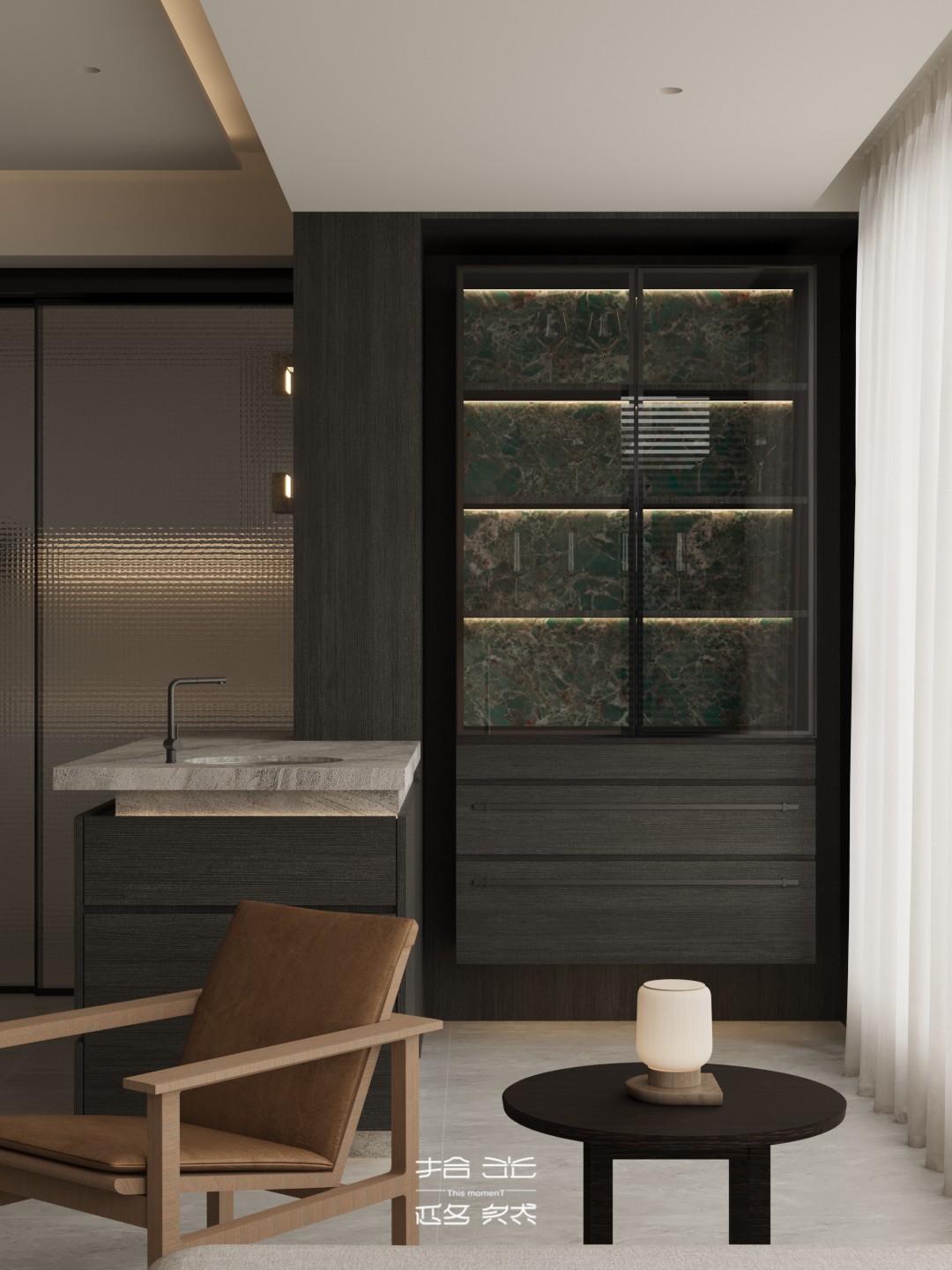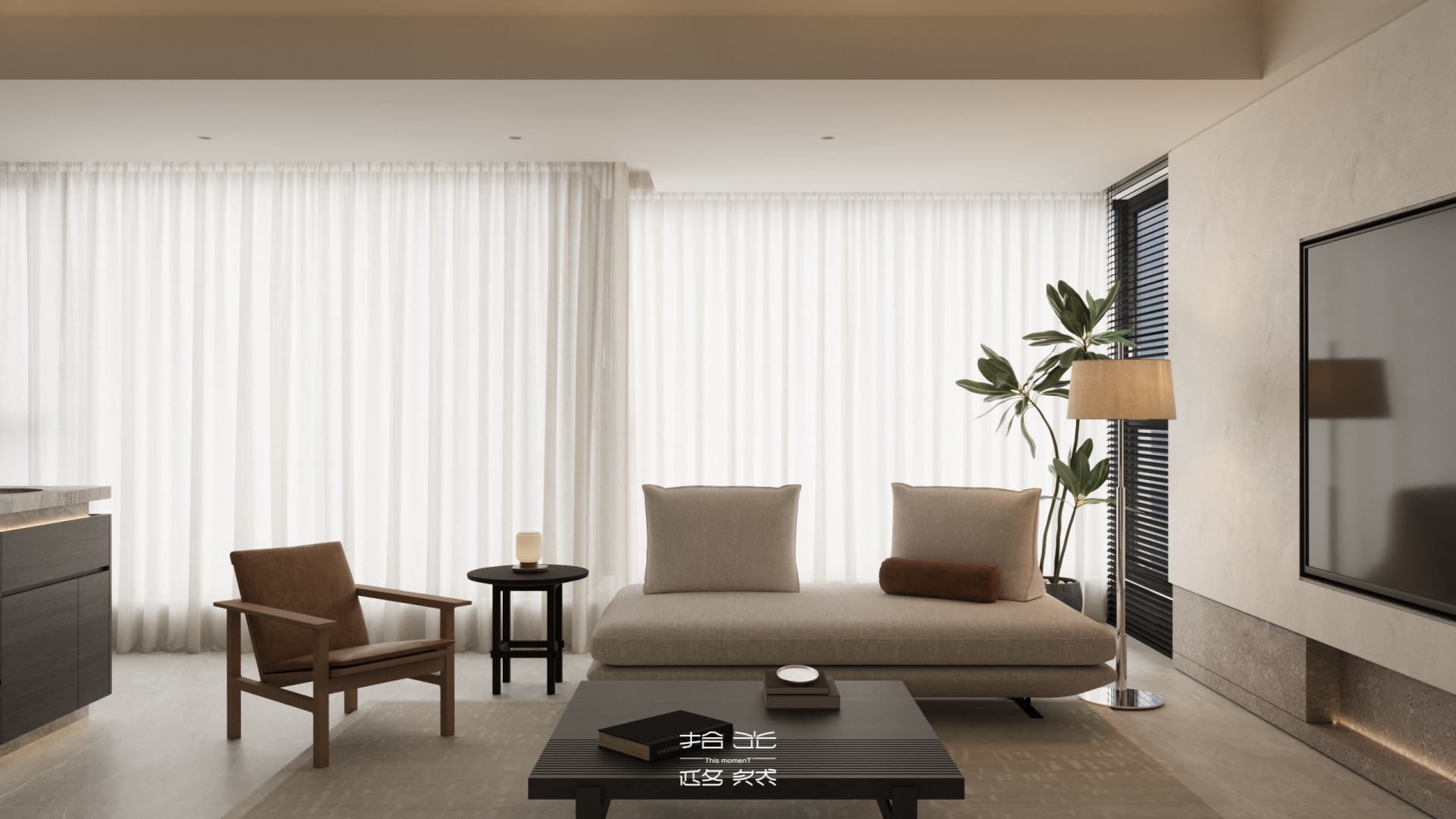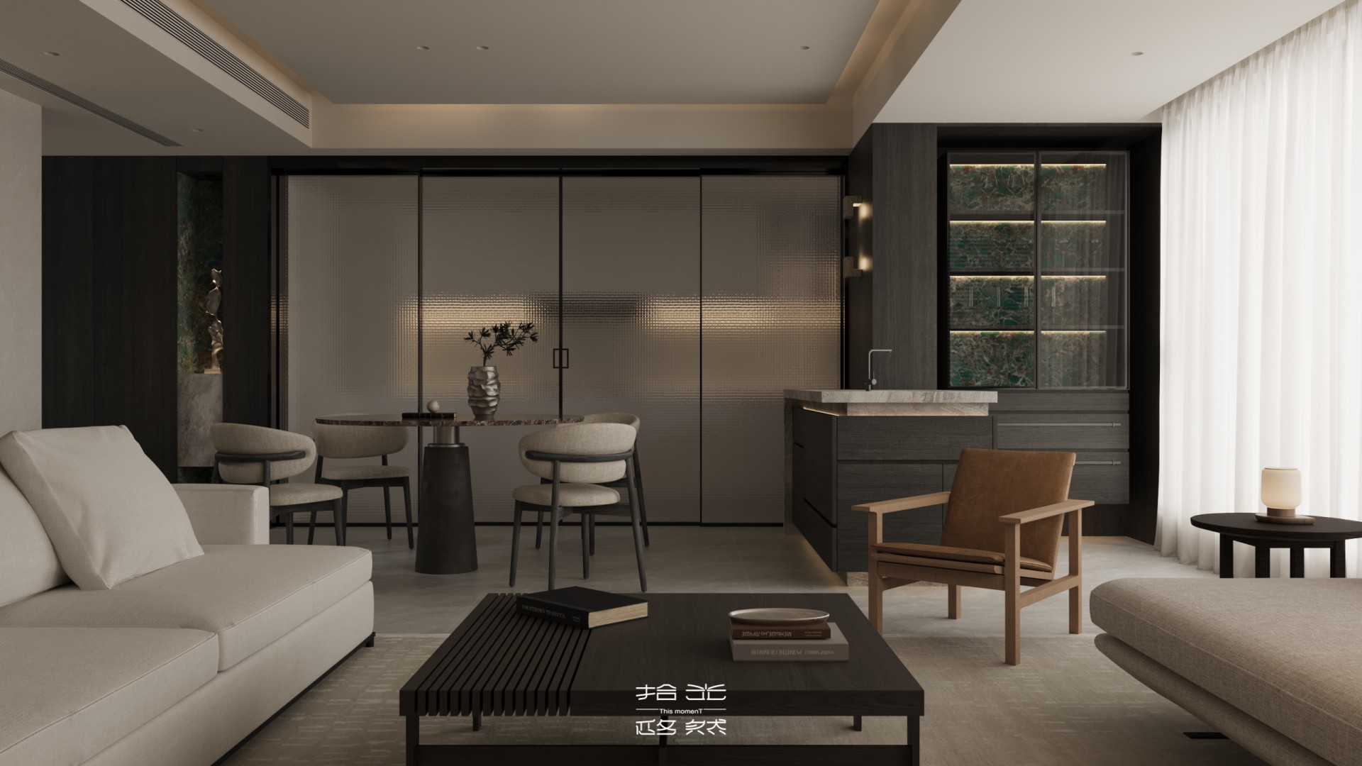 顶楼跃层,自带 “离天空更近” 的浪漫。 一层以温润素色铺陈,让客厅、餐厨在光影里生长出松弛感;二层藏着更私密的诗意,与庭院的山石草木遥相呼应。从室内到露台,上下空间的流动,把 “隐于城” 的静谧与 “家的烟火气” 揉成一团,每一步都像在与自然、与生活温柔对话 。