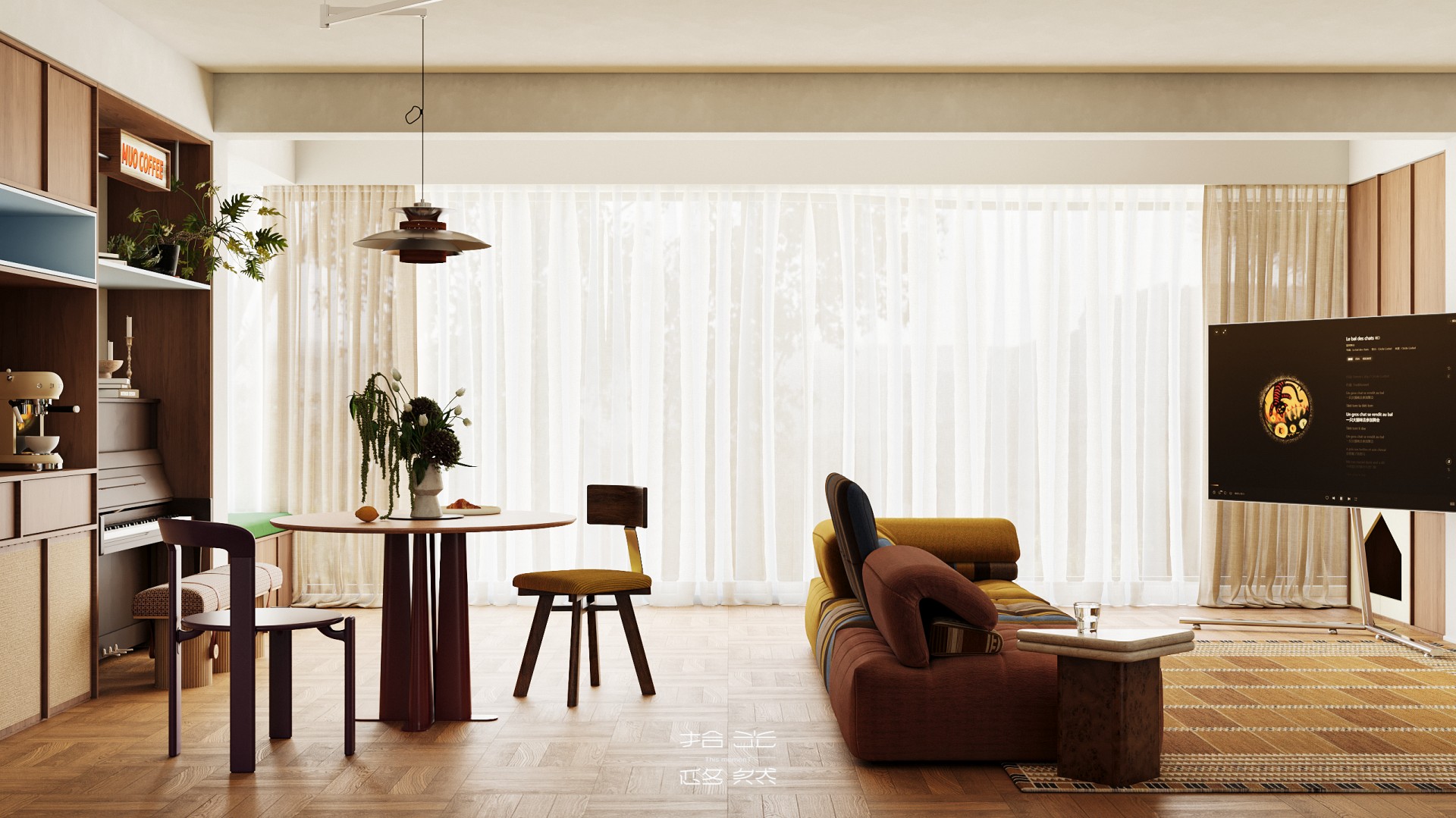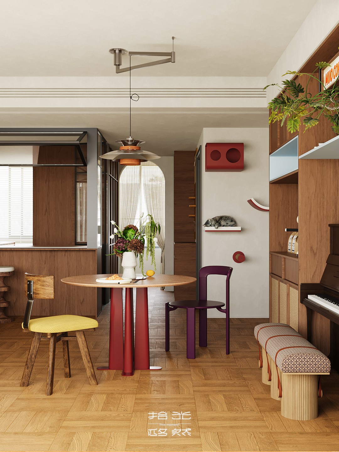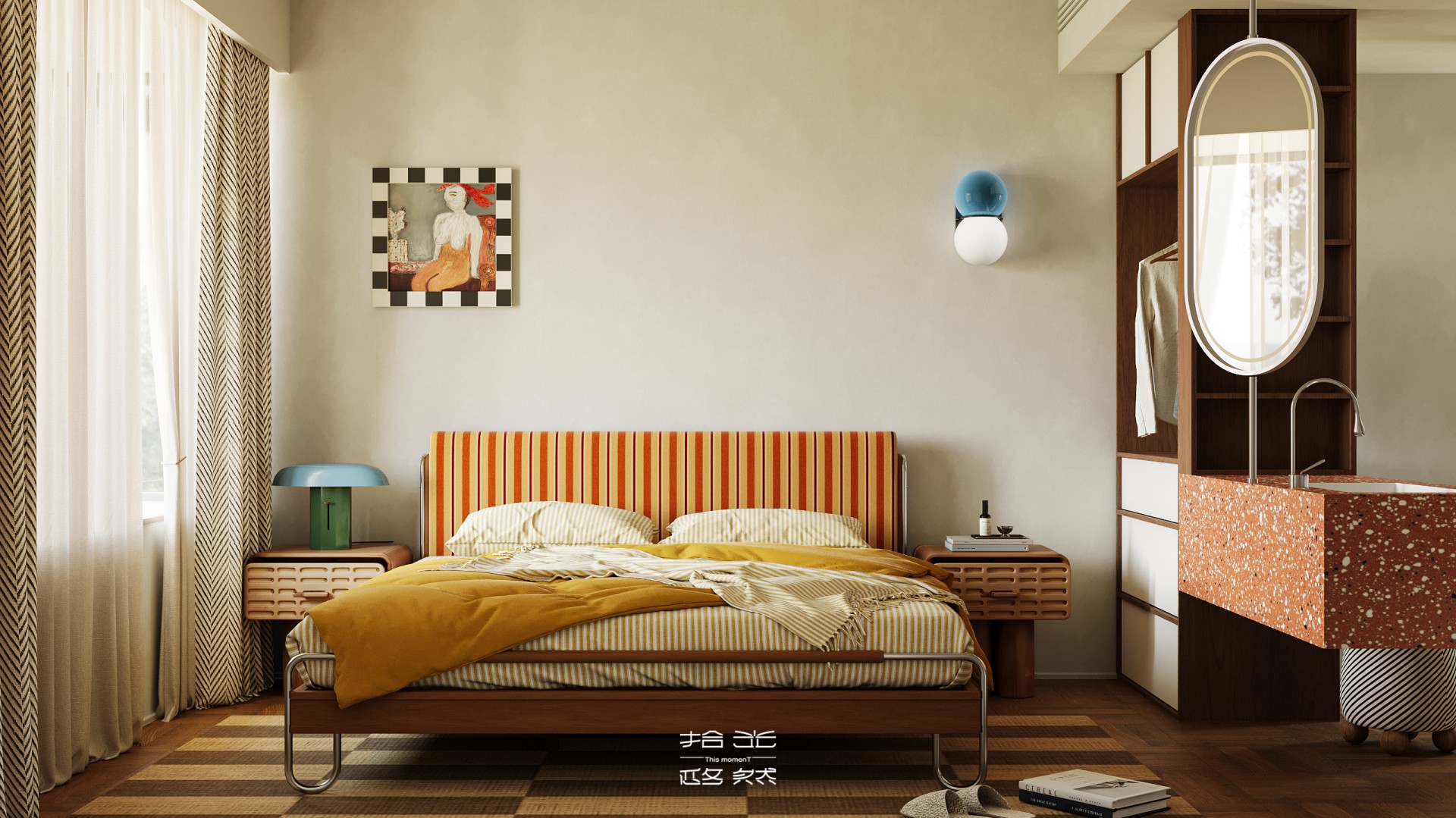 家是生活的画布,该盛满鲜活的色彩与温度。这套设计以复古撞色为笔、原木为底,自然质感,融入玩转出空间趣味。 客厅里艺术画与条纹单椅对话,卧室用跳色床品点亮松弛,餐厨区多元色块碰撞烟火。每一处混搭,都让家成为 “可居住的艺术展”,把平凡日常晕染成浪漫的诗 。