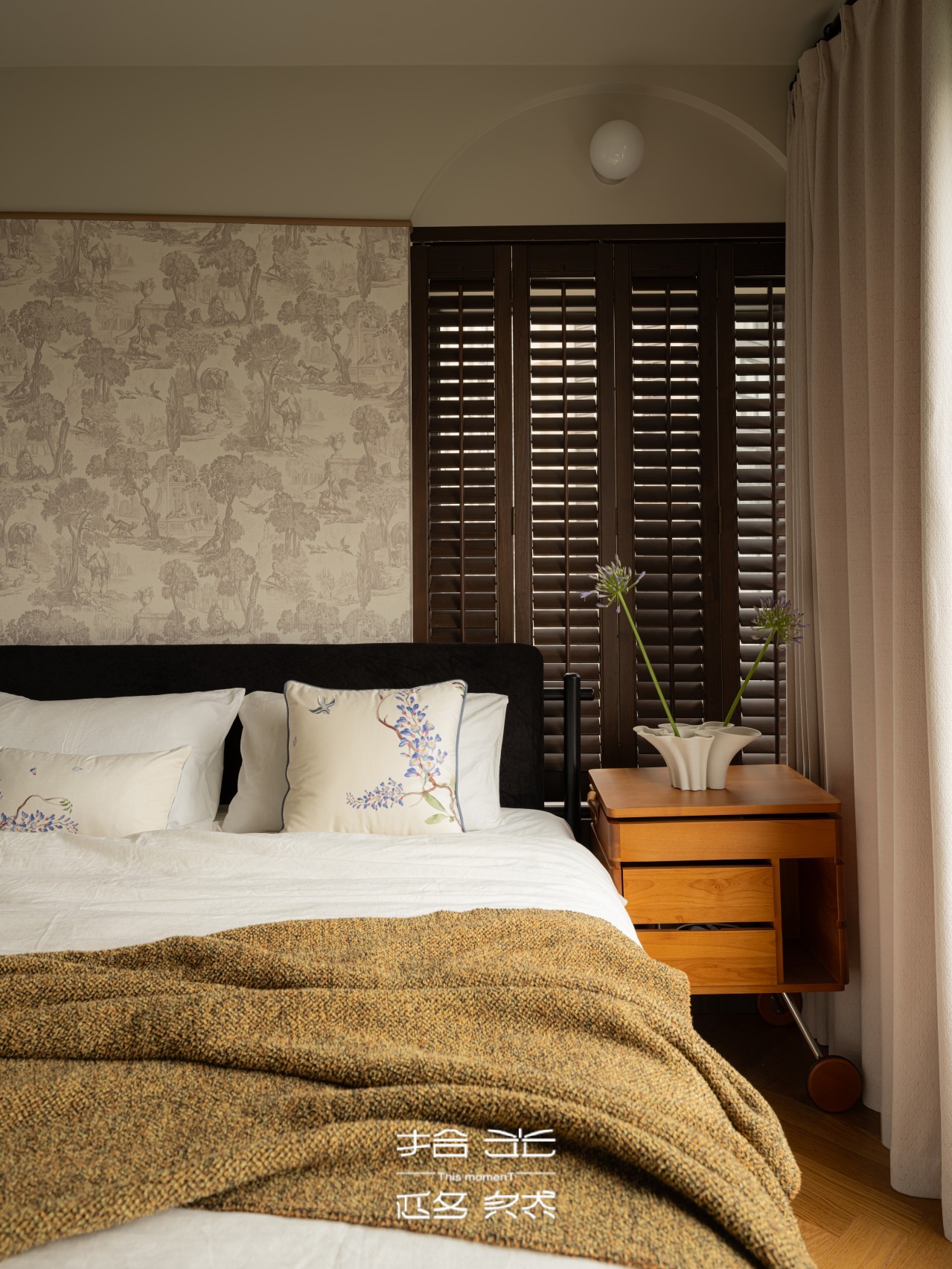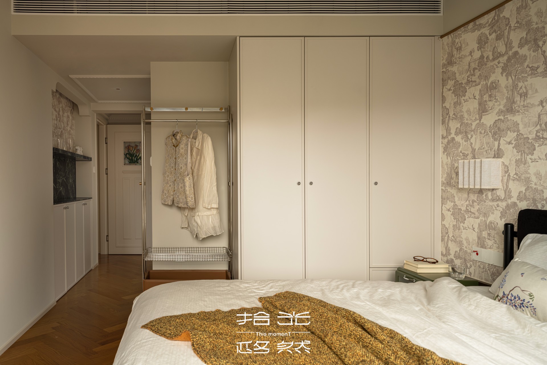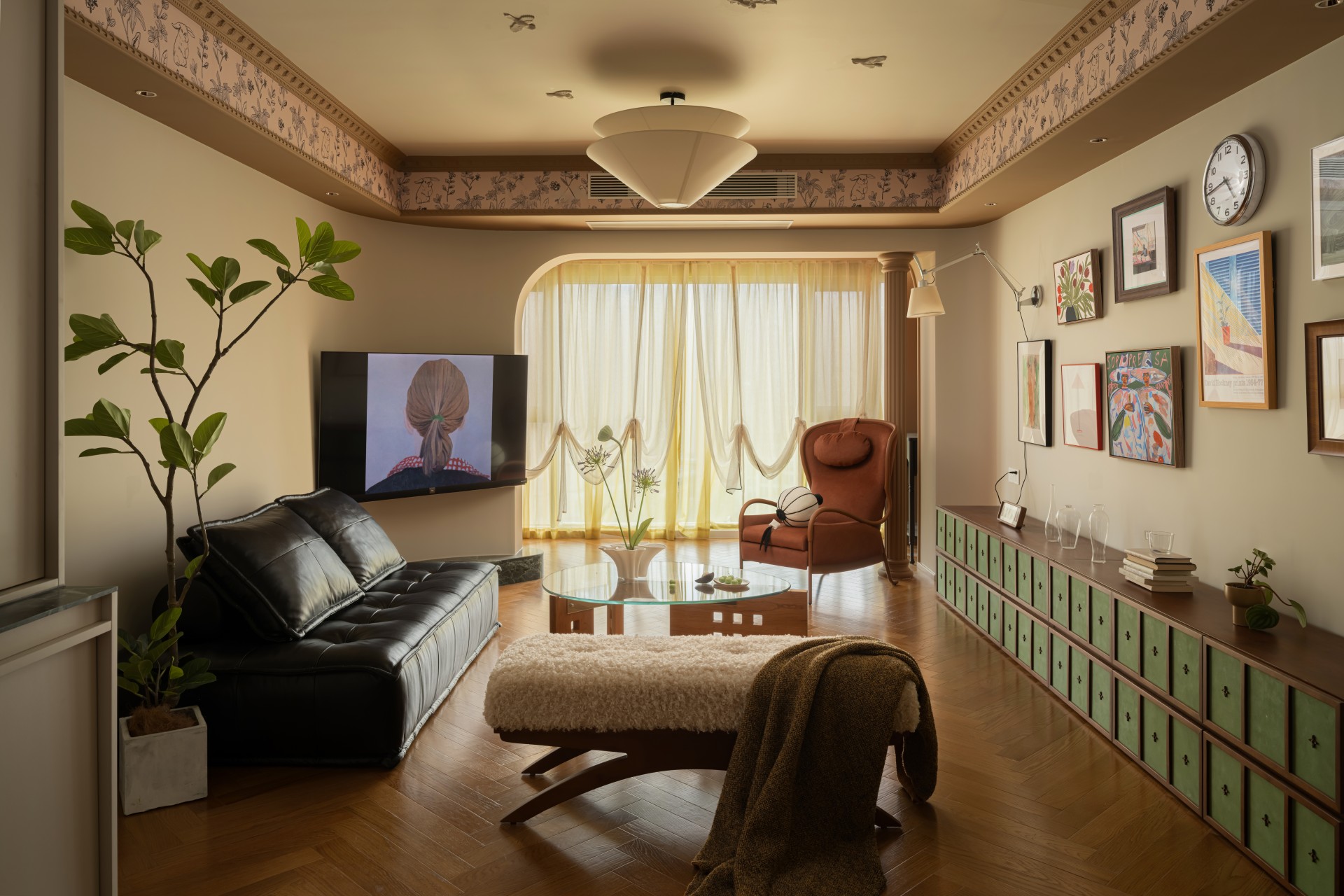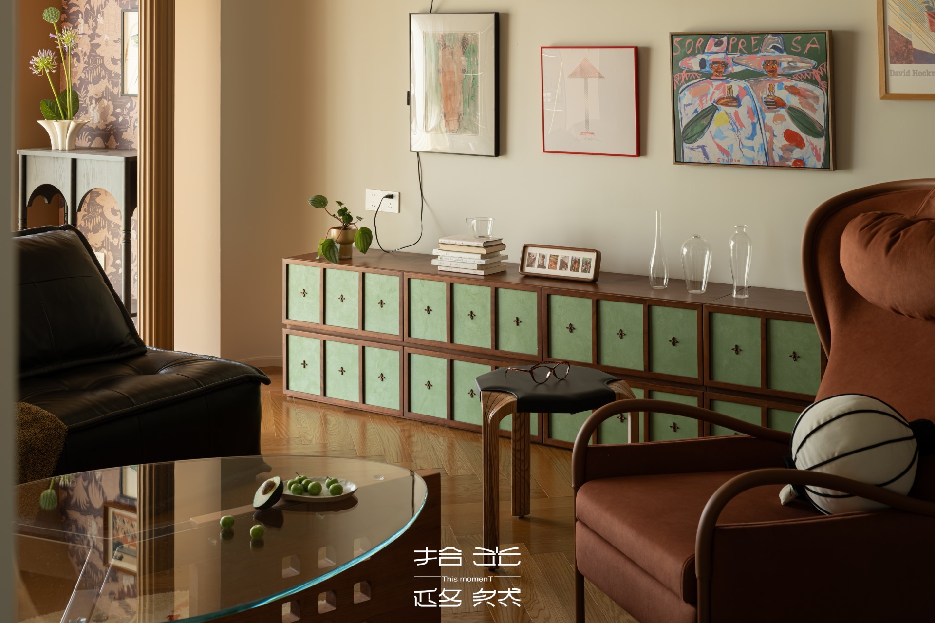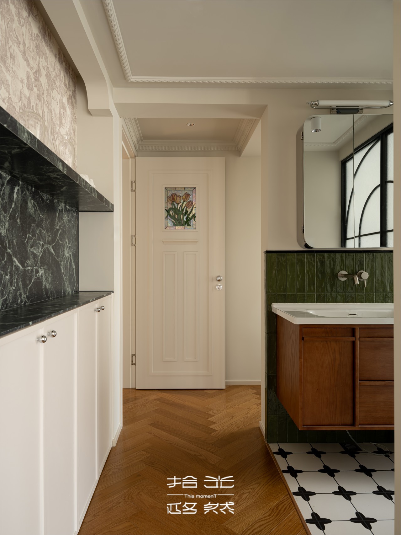 推开屋主家门的瞬间,我们被那抹跳脱的复古棕和复古绿抓住了目光。复古花纹墙纸,藏着长辈们念叨的旧时光,又暗暗和屋主钟爱的暗绿呼应,就像家里老人默默支持她的喜好,不动声色却满是温度。