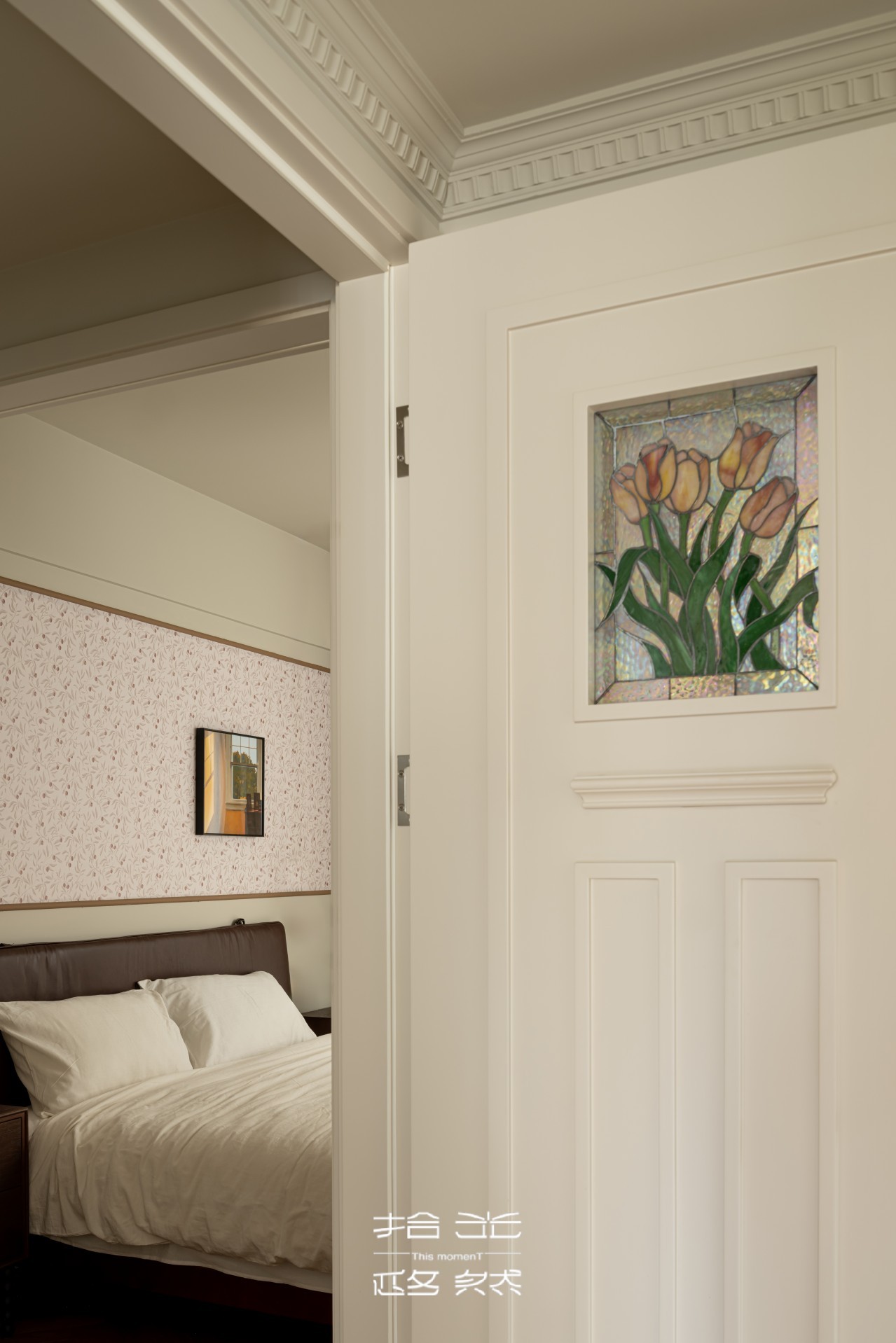 ⑤ 细节优化弥补空间局限:因整体空间感优化受限,转向立面与顶面设计 —— 以分段墙纸划分顶面层次,用石膏线、色彩分色提升立面质感,引导视线聚焦,在视觉上扩大空间通透感,让 “小格局” 也能有 “大质感”。
