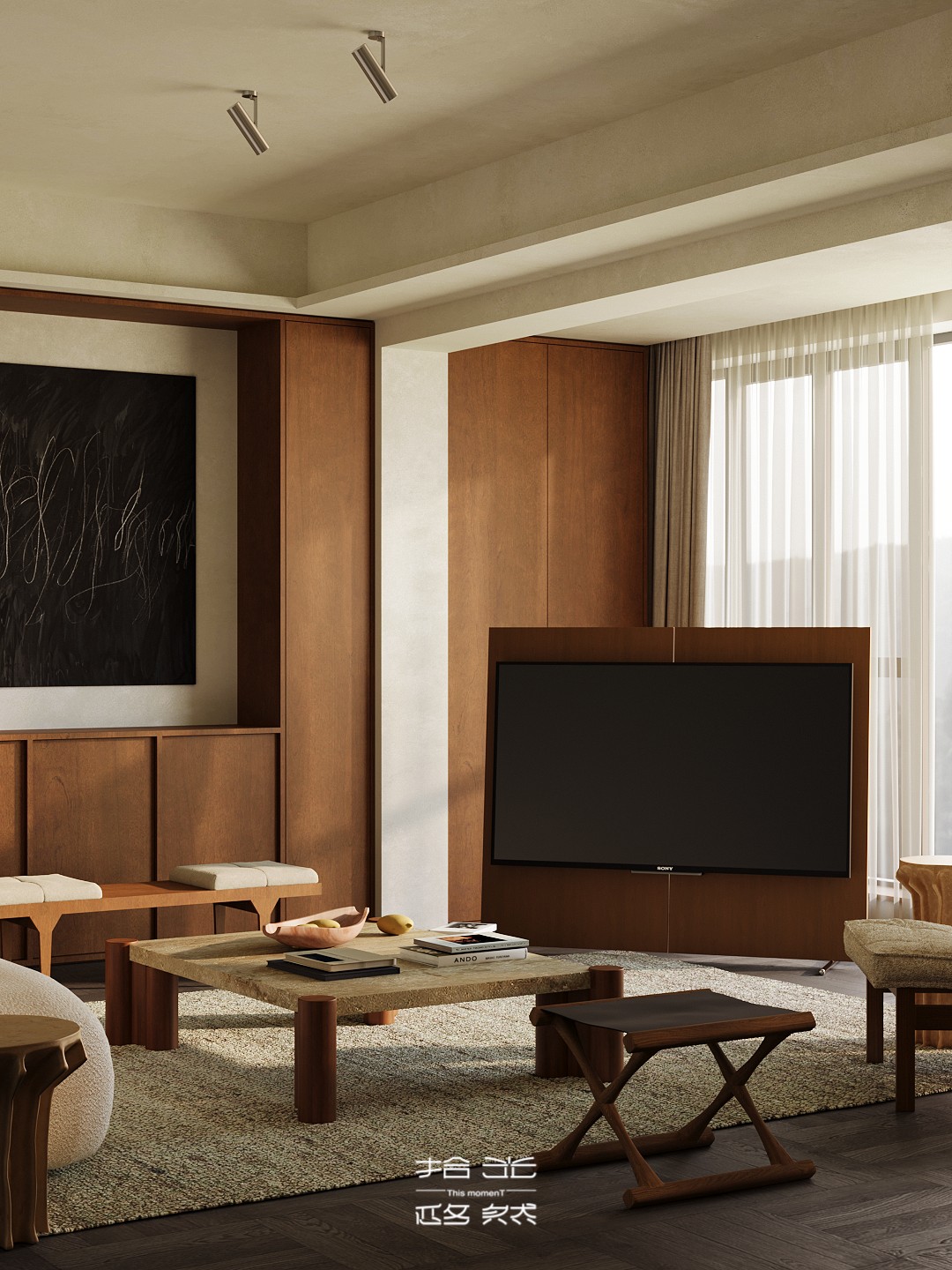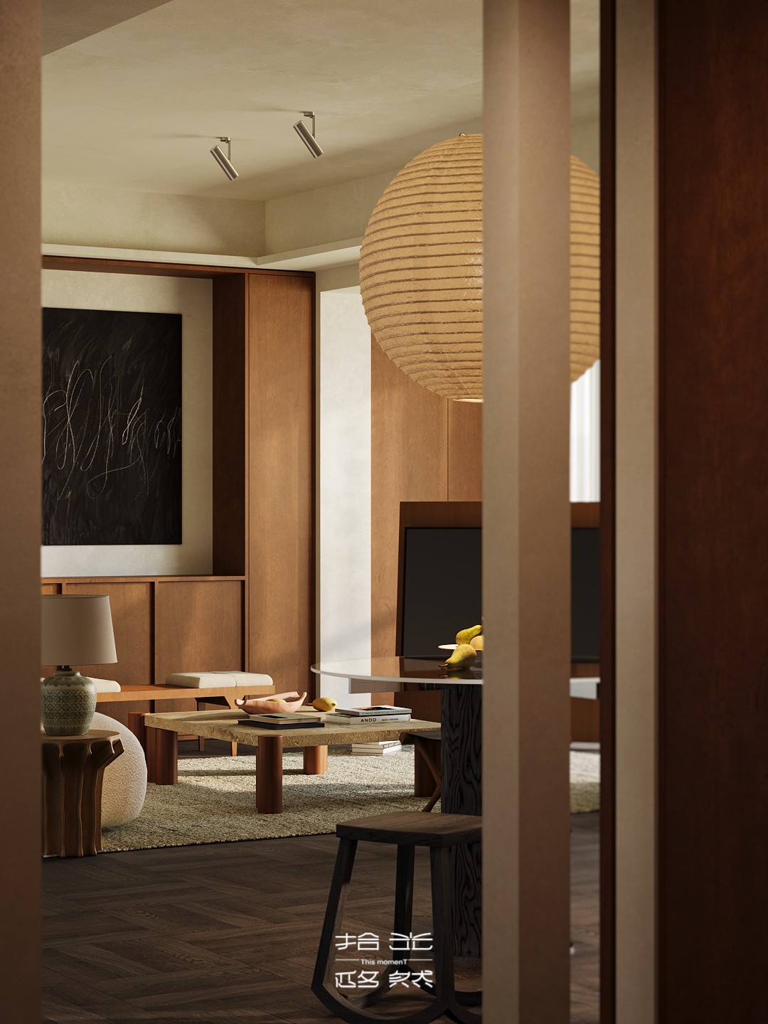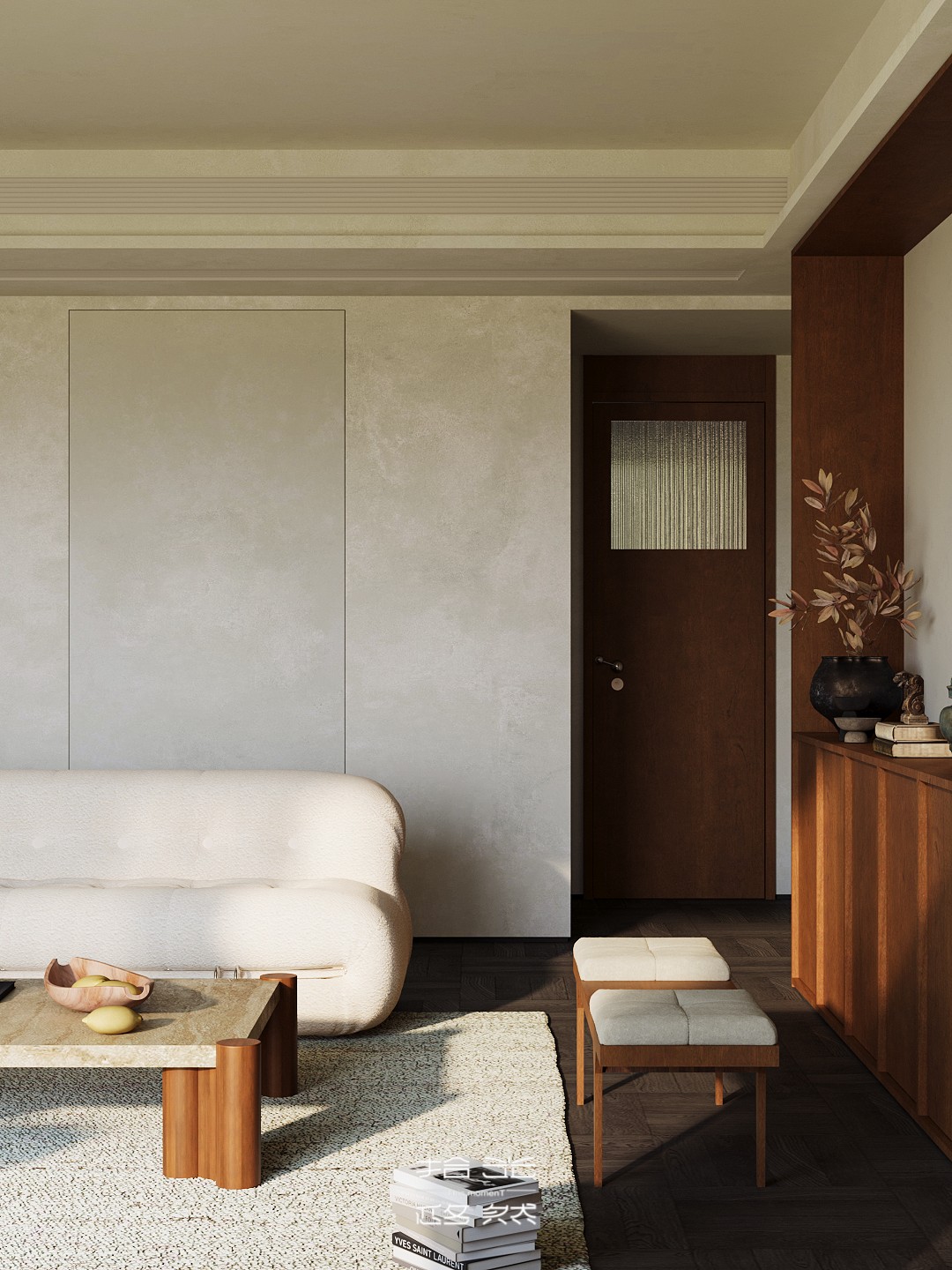 当居所设计跳出过度装饰的窠臼,回归简雅本真,生活的诗意便悄然弥漫。我们试图打破常规,以简约为笔,以自然为墨,精心勾勒出一方能让人卸下疲惫、与美好共生的天地。 步入其中,没有冗余的堆砌,每一处布局都经过反复推敲。客厅里,木质元素与柔和的布艺相互映衬,温润的质感瞬间拉近了人与空间的距离。 大面积的玻璃窗如同画框,将室外的绿意与天光引入室内,让自然成为空间最好的装饰,阳光透过窗棂洒落,在地面投下斑驳的光影,营造出静谧而温暖的氛围。 家具的选择也暗藏巧思,没有繁复的造型,却以简洁的线条和舒适的触感,传递出低调的雅致。