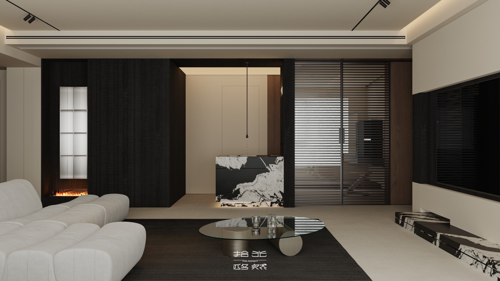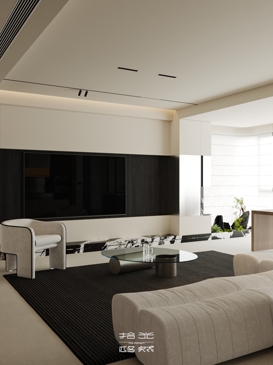 成都的 TOD是 “脚踩油门的都市活力”。这套 155㎡毛坯房,却被设计师改出了 “踩下刹车的松弛感”。深木格栅像光影调节器,把 TOD 的喧嚣拆解成墙面上的温柔条纹。 黑白石材带着艺术锐气,却被奶油白墙面 “柔化” 得恰到好处;弧形垭口、悬浮柜体,让原本生冷的毛坯空间,瞬间有了高级慵懒的呼吸感。 现在走进来,完全是两个世界:门外是 TOD 商圈的人潮涌动,门内是黑白棕交织的松弛结界。大白沙发像朵云,等着人陷进去,金属百叶滤过的阳光,在黑白石材上跳着安静的舞,LDK 通透明亮,把城市风景也框成了家里的装饰画。 就算扎根在都市最热闹的脉搏上,家也能是让人瞬间慢下来的 “治愈容器”。