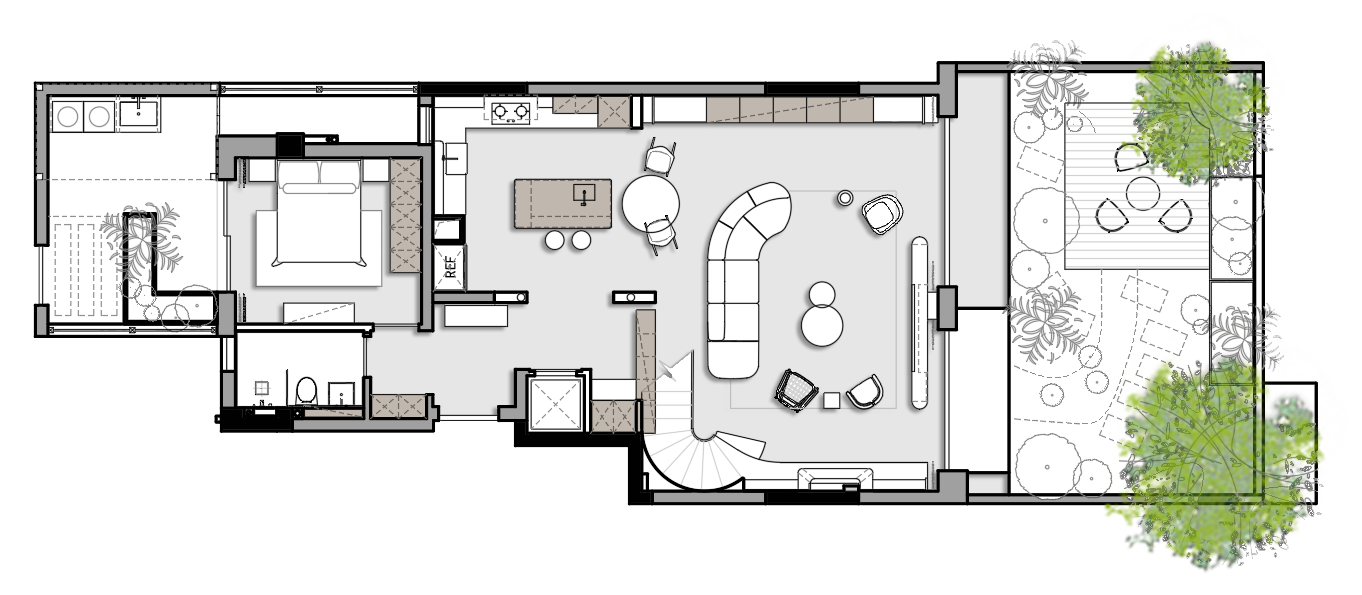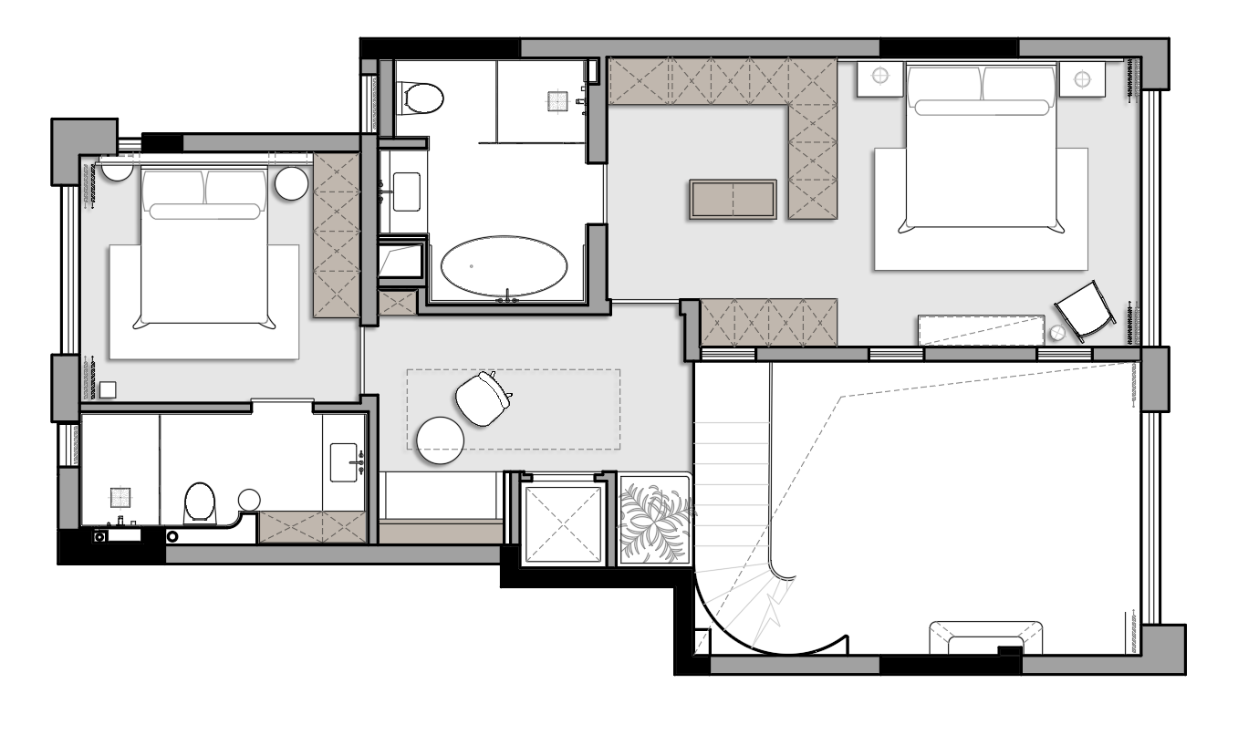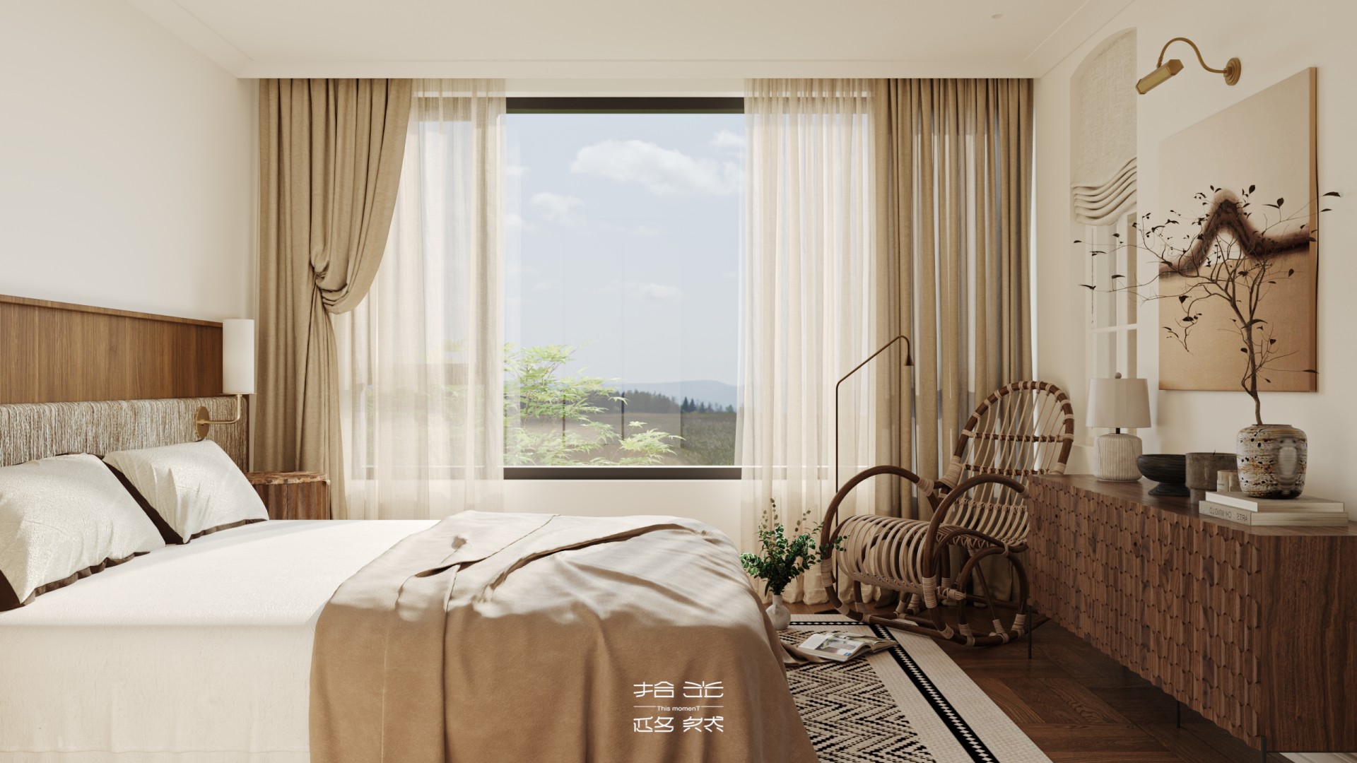 大宅的优雅总有种 “既要气场,又要松弛” 的执念。这套 336㎡的别墅,经设计师改造,直接把 “油画里的自然复古感” 带进了挑高空间里。 真石地砖带着山野的粗粝温润,复古地毯像从老电影里裁下的温柔色块,米白、木棕、浅灰的低饱和配色,往眼睛里一铺,就像做了场治愈 SPA。 更绝的是双层挑高客厅,通顶窗帘跟着大落地窗 “吞” 进整面天光,白天是光影流动的艺术展,傍晚窝进沙发看落日,连呼吸都浸着自由的松弛味。