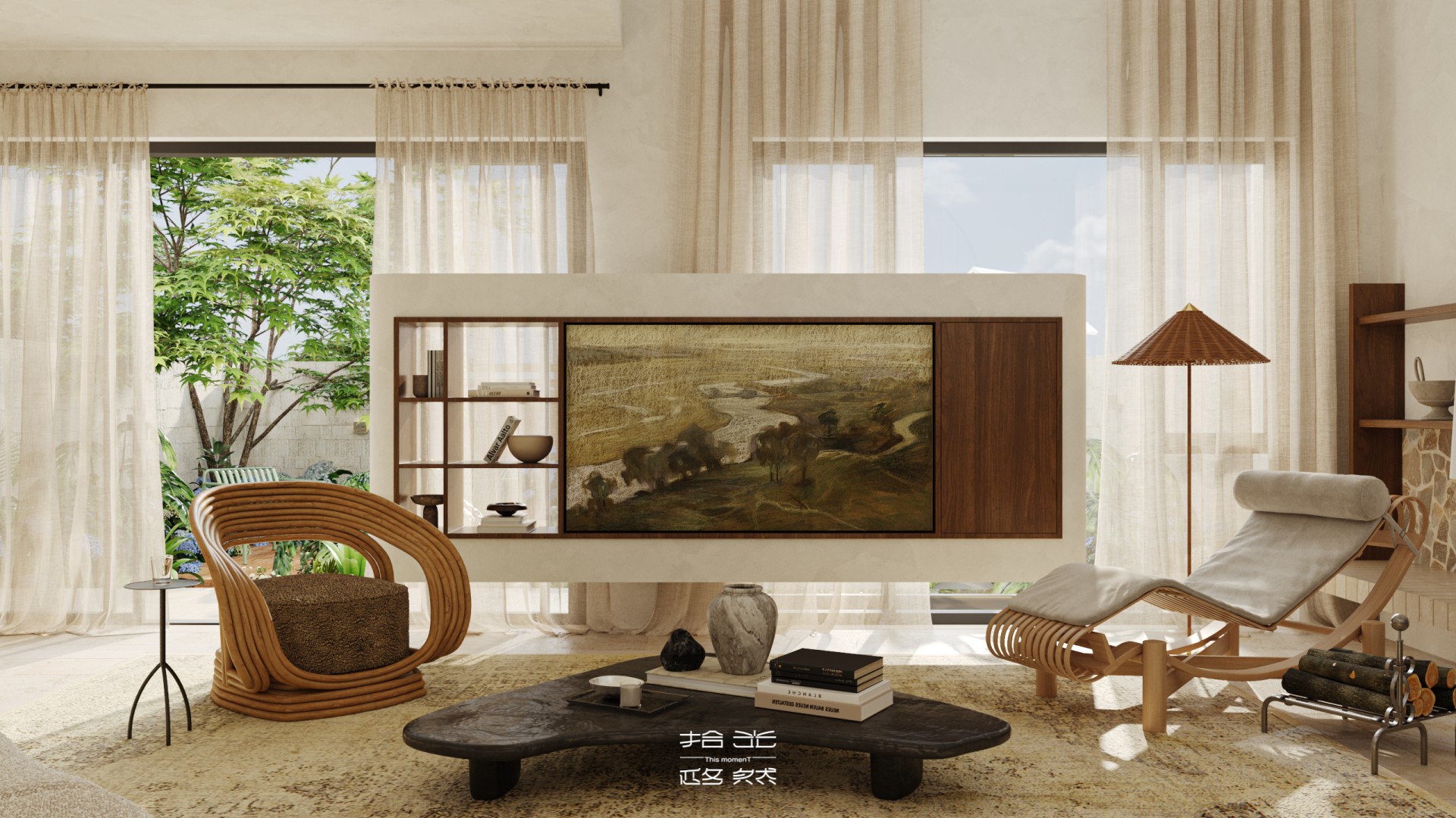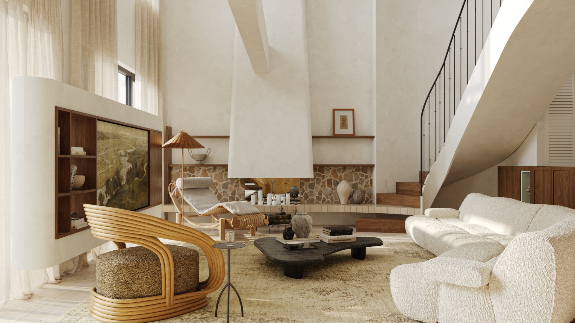 把油画里的 “自然复古松弛感”,搬进了挑高客厅里!