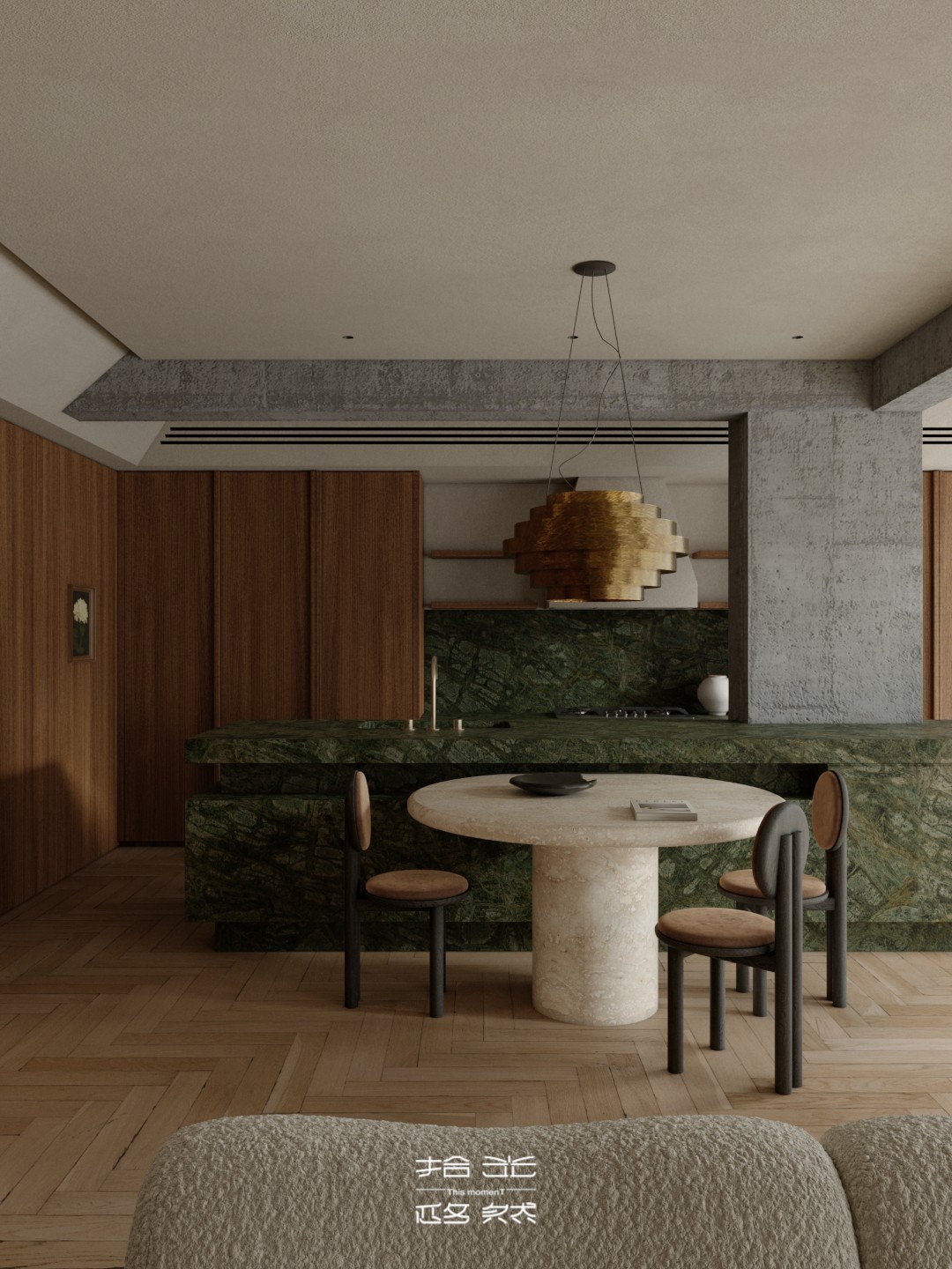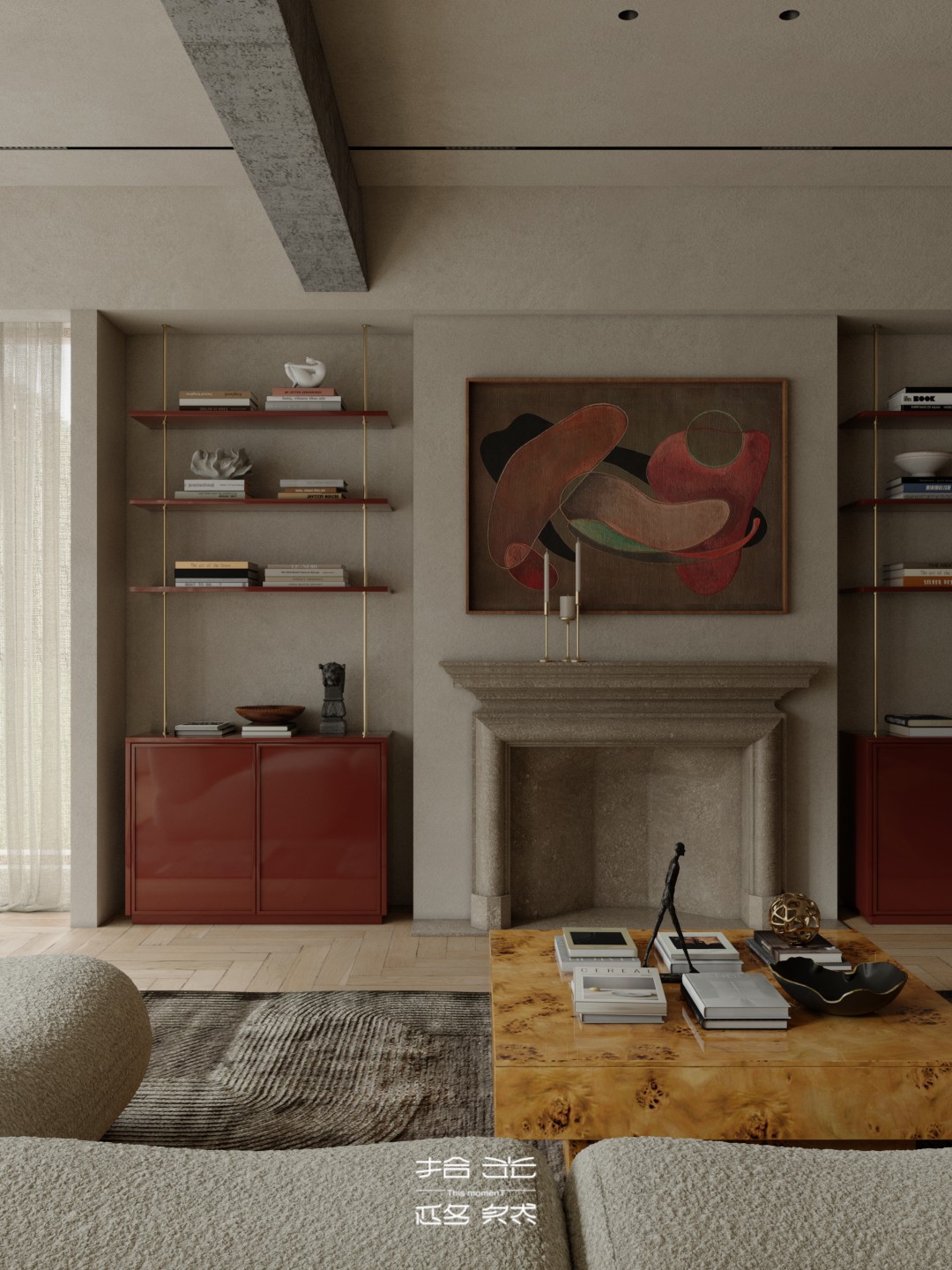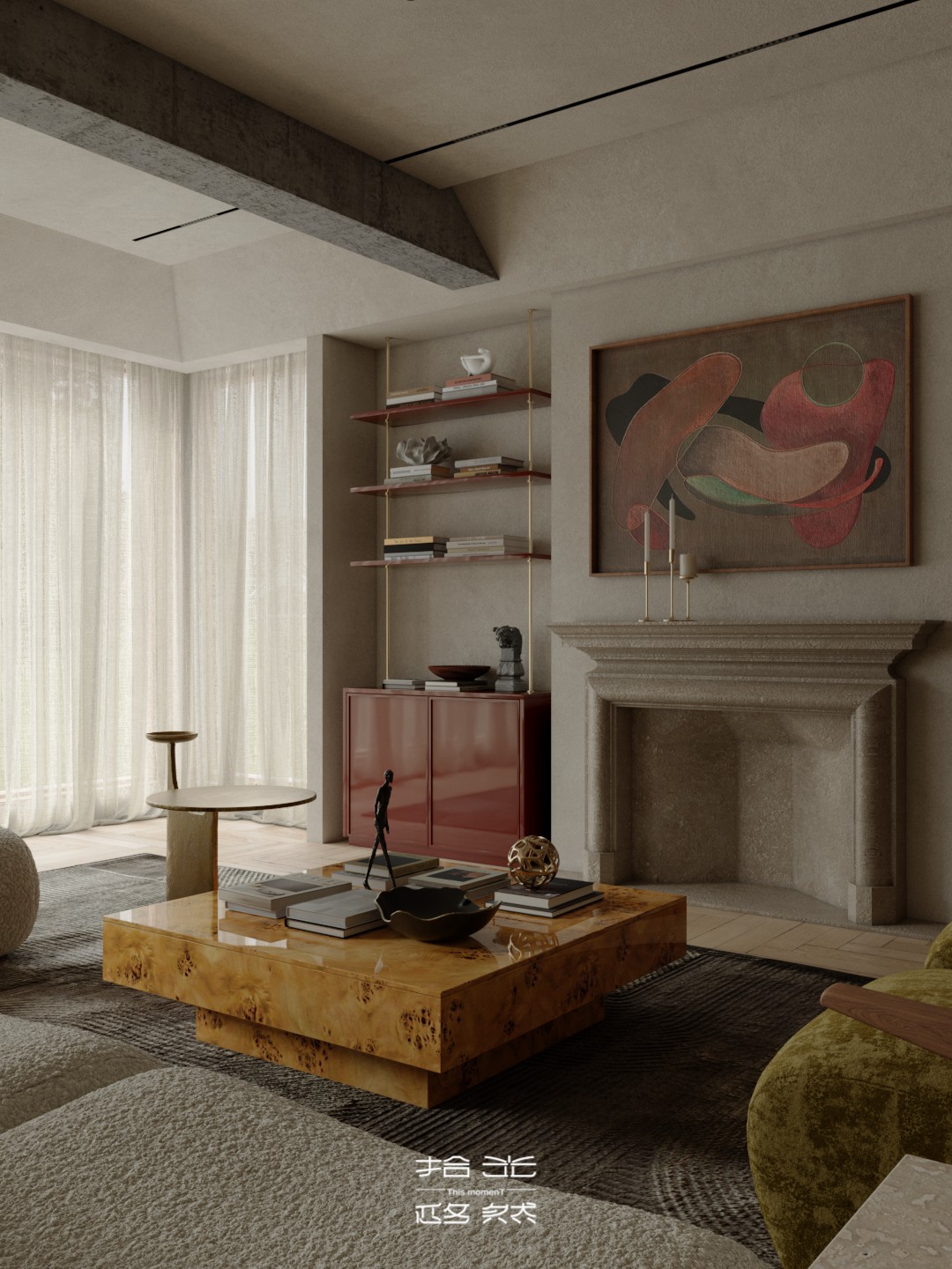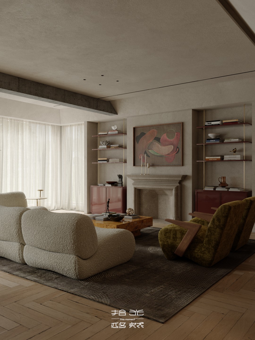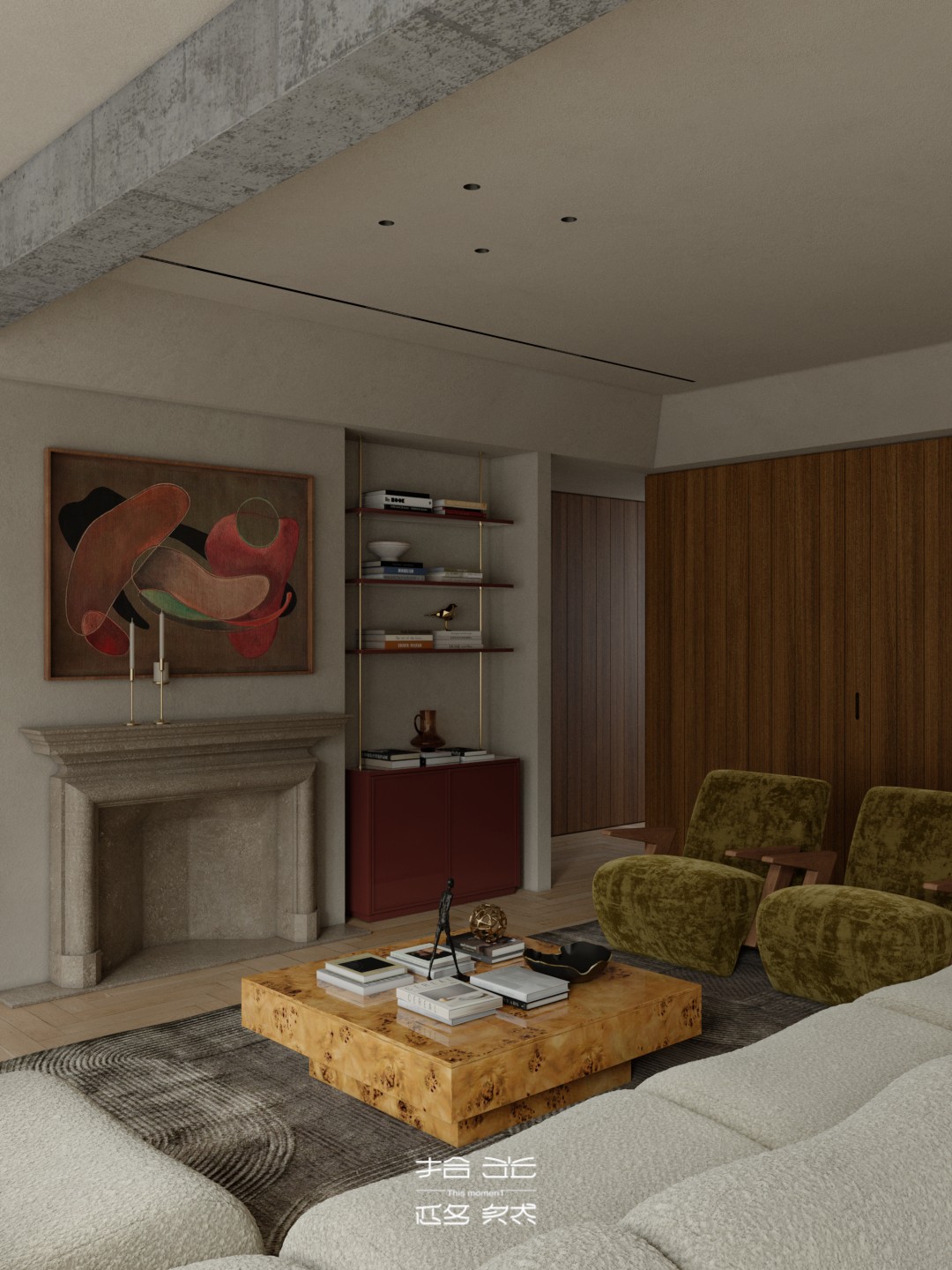 在 143㎡的毛坯空间里,我们试图以 “侘寂美学” 为线索,编织出自然与生活的共生叙事。本案从一片空白的毛坯基底出发,摒弃过度修饰,借由木材的温润、石材的肌理、布艺的柔软等天然材质,将侘寂风的质朴松弛与现代居所的精致质感相融合。 无论是开放式公共区域的通透布局,还是壁炉、艺术摆件等细节处的人文表达,都在探索 “毛坯房改造” 的更多可能 —— 让空间既保留原始质感的余韵,又能承载当代人对舒适、艺术化生活的向往,最终生长出一个有呼吸、有温度的私宅空间。