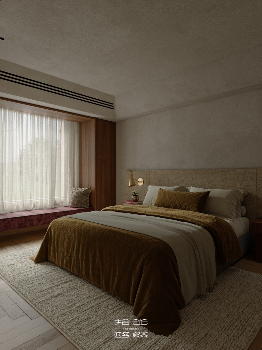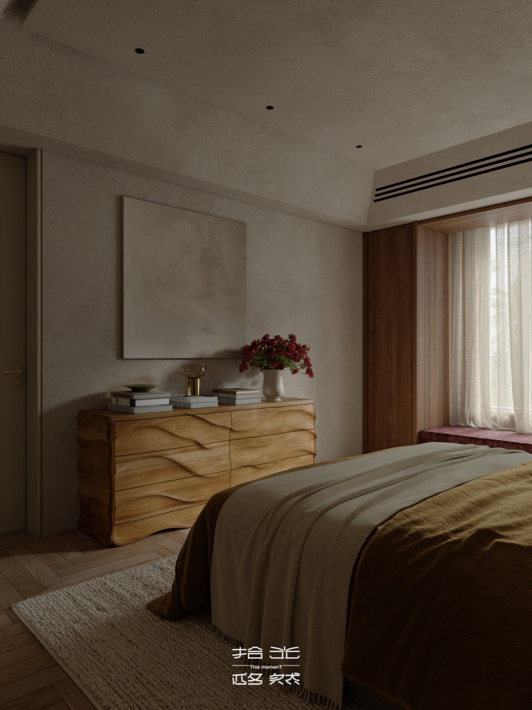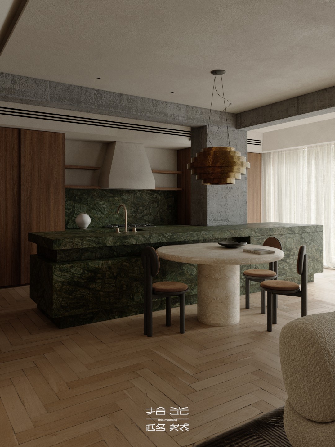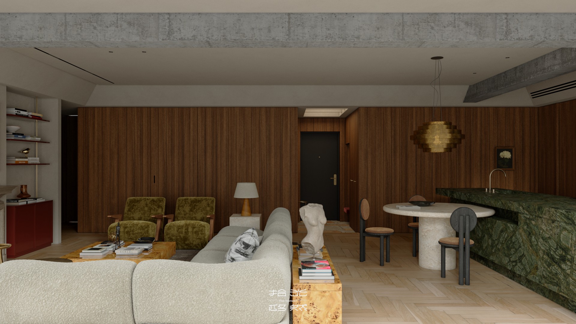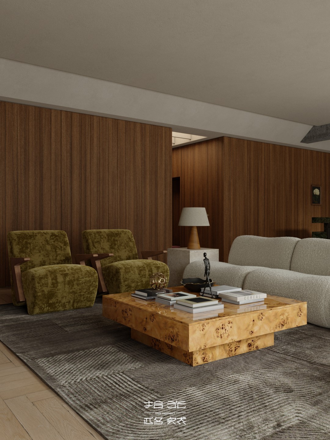 在 143㎡的毛坯空间里,我们试图以 “侘寂美学” 为线索,编织出自然与生活的共生叙事。本案从一片空白的毛坯基底出发,摒弃过度修饰,借由木材的温润、石材的肌理、布艺的柔软等天然材质,将侘寂风的质朴松弛与现代居所的精致质感相融合。 无论是开放式公共区域的通透布局,还是壁炉、艺术摆件等细节处的人文表达,都在探索 “毛坯房改造” 的更多可能 —— 让空间既保留原始质感的余韵,又能承载当代人对舒适、艺术化生活的向往,最终生长出一个有呼吸、有温度的私宅空间。