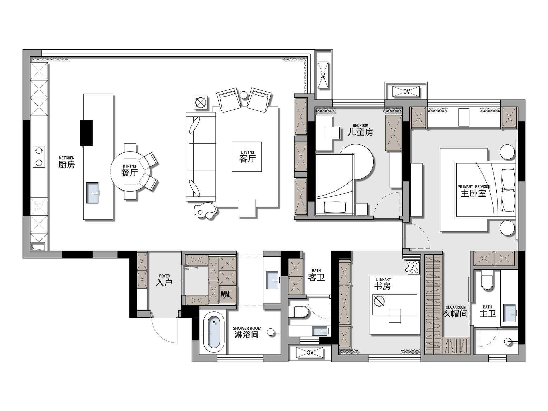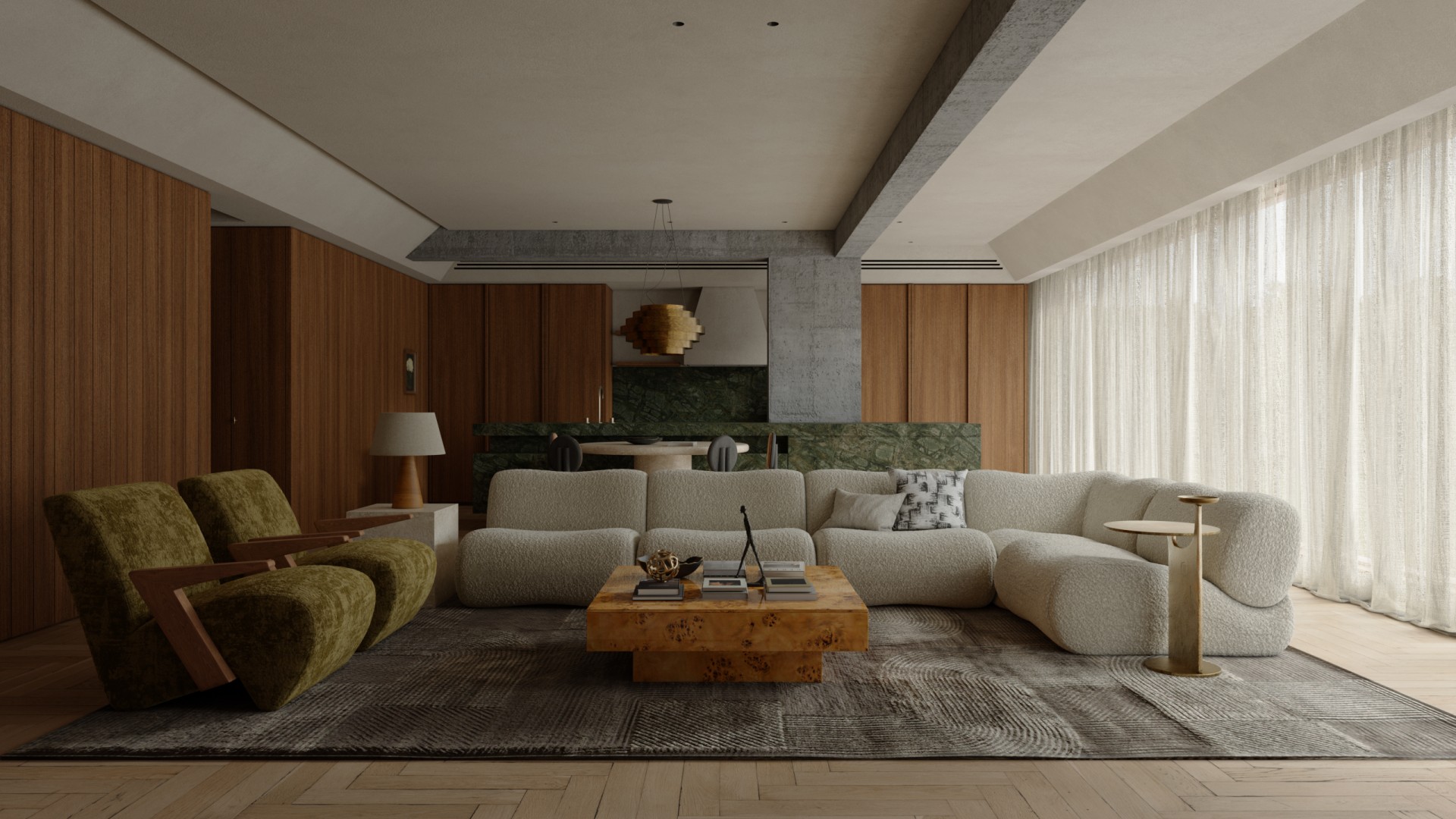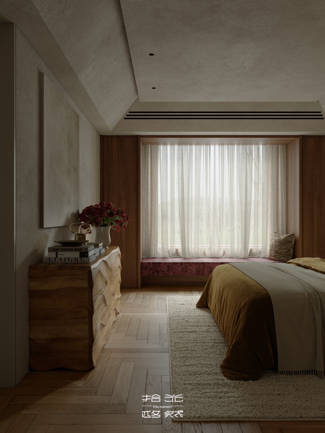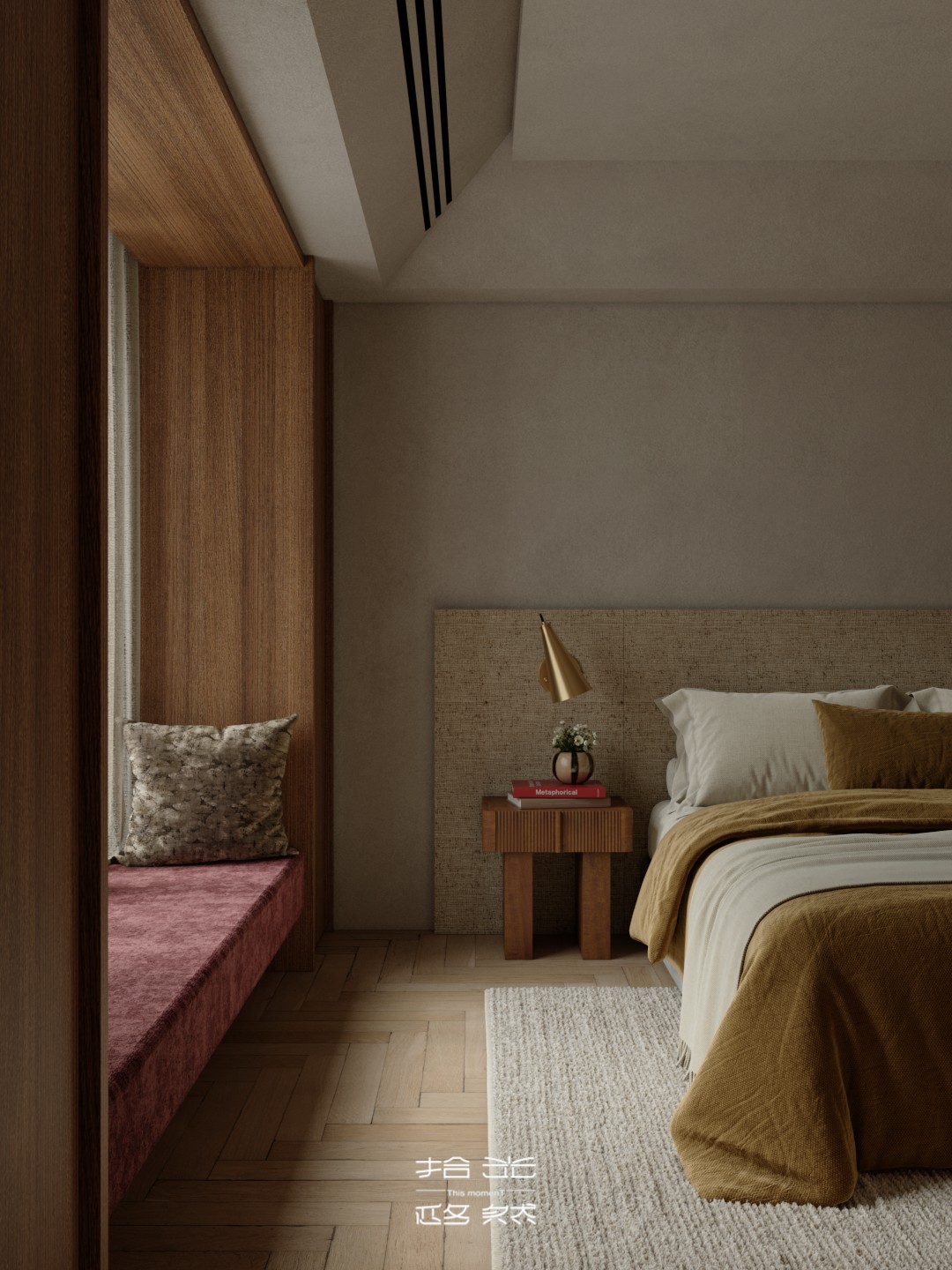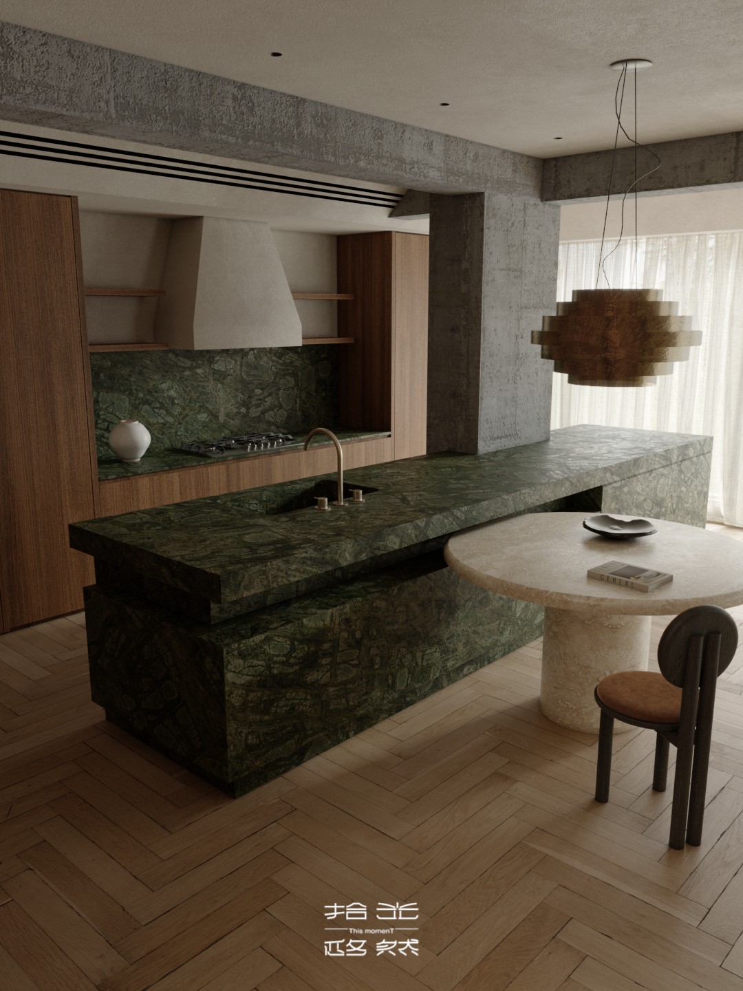 在 143㎡的毛坯空间里,我们试图以 “侘寂美学” 为线索,编织出自然与生活的共生叙事。本案从一片空白的毛坯基底出发,摒弃过度修饰,借由木材的温润、石材的肌理、布艺的柔软等天然材质,将侘寂风的质朴松弛与现代居所的精致质感相融合。 无论是开放式公共区域的通透布局,还是壁炉、艺术摆件等细节处的人文表达,都在探索 “毛坯房改造” 的更多可能 —— 让空间既保留原始质感的余韵,又能承载当代人对舒适、艺术化生活的向往,最终生长出一个有呼吸、有温度的私宅空间。
