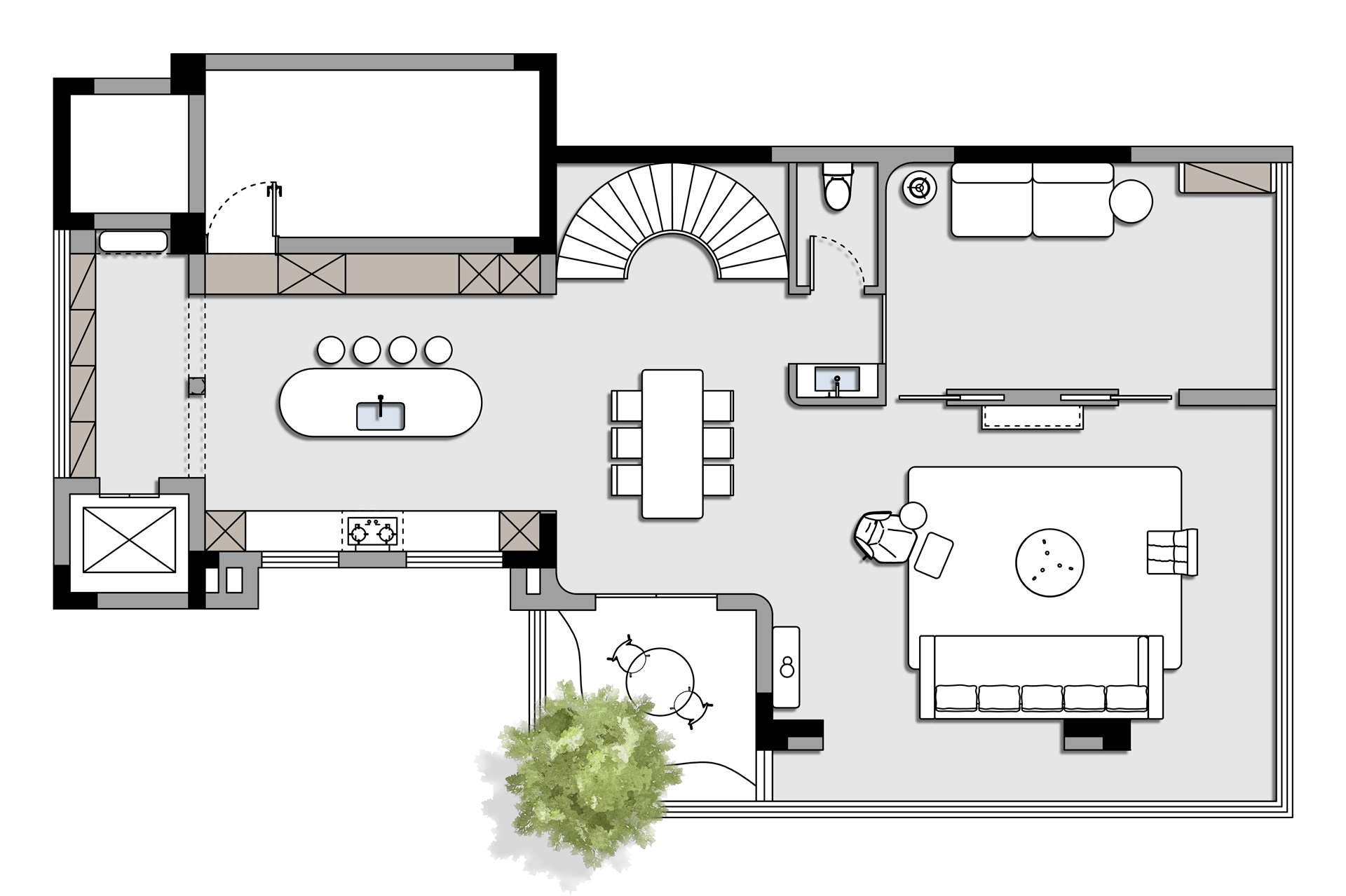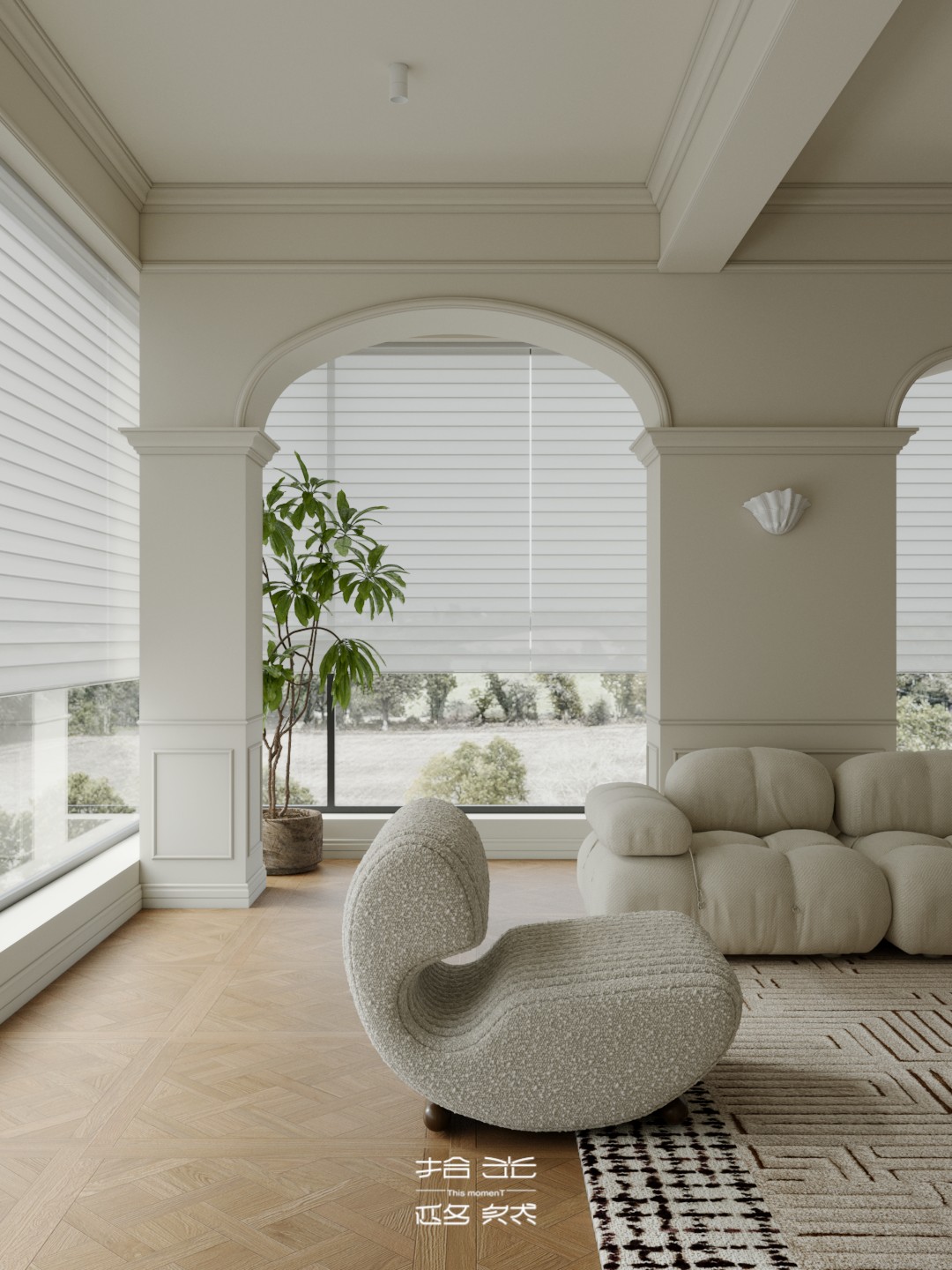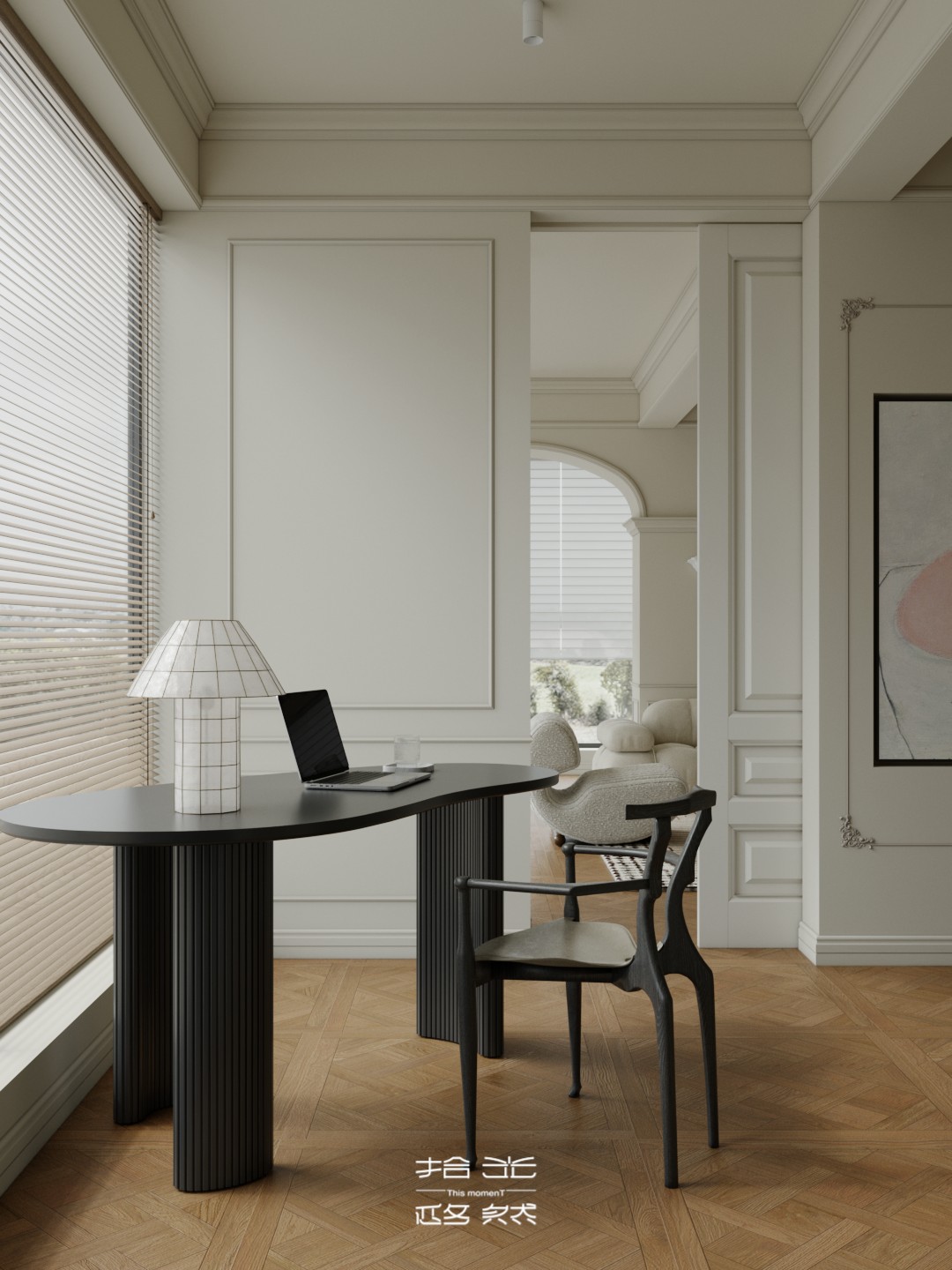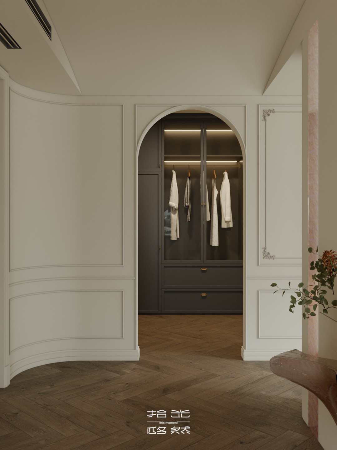 一场关于 “空间层次解构与艺术基因赋能” 的设计革命正式启幕。本案以 “法式新古典的优雅骨架承载现代艺术的先锋灵魂” 为核心叙事,针对跃层空间的结构特性与高净值业主的审美追求,将毛坯基底重塑为分层而联动、复古且先锋的沉浸式生活容器。 我们借由法式拱券、石膏雕花的经典形制搭建跃层的空间秩序,以现代艺术的抽象材质、异形表达打破层与层的视觉边界 —— 在东原印江山的跃层语境中,人字拼木地板的复古肌理与粉色大理石的艺术张力碰撞出层次,法式壁炉的仪式感与玻璃枝形灯的空灵感交织出韵律,抽象雕塑与先锋软装将上下两层转化为 “可感知的艺术叙事场”……