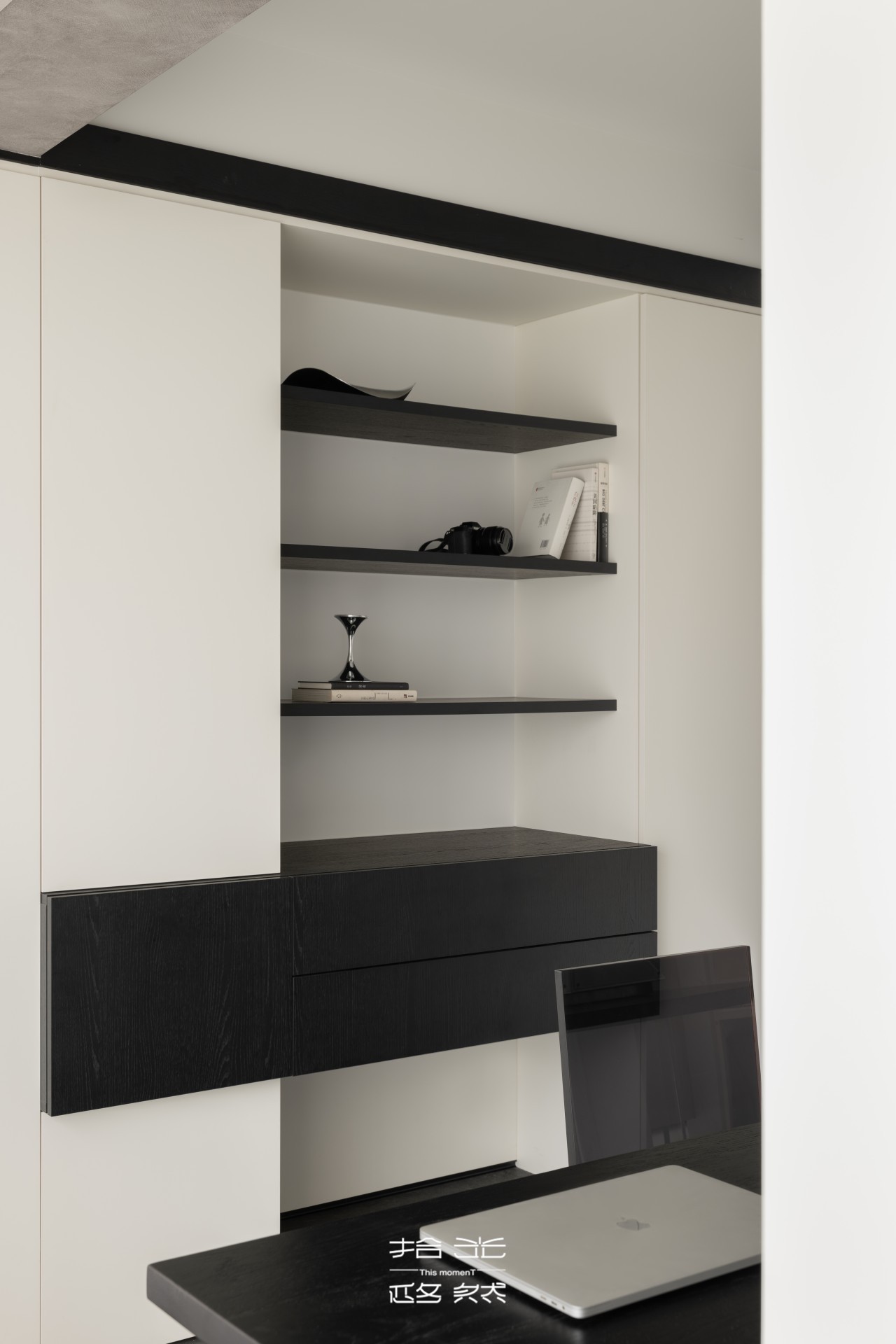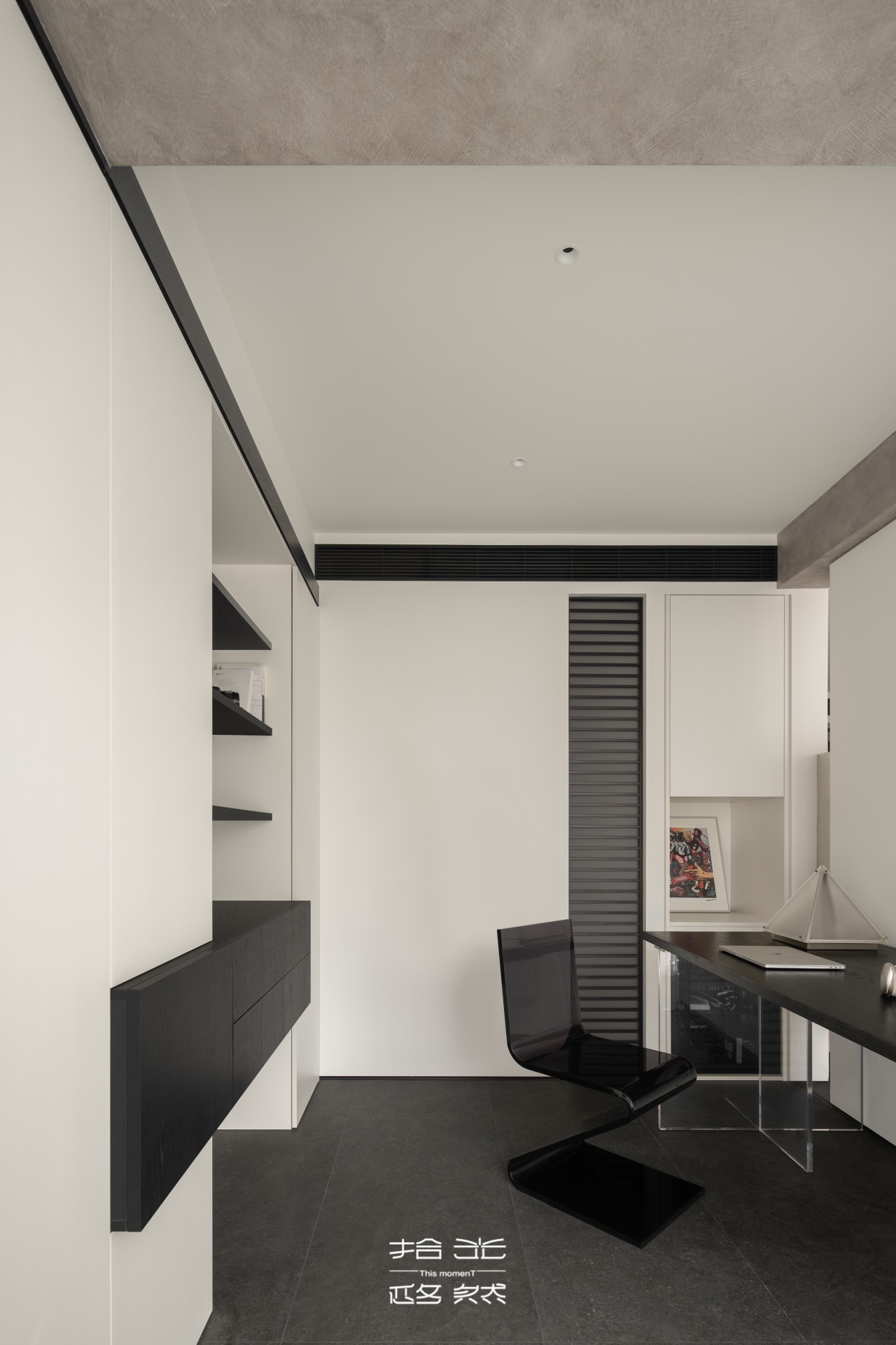 抬高书房 x 阳台造景 x 引光入室,黑白去风格的二人世界松弛又高级