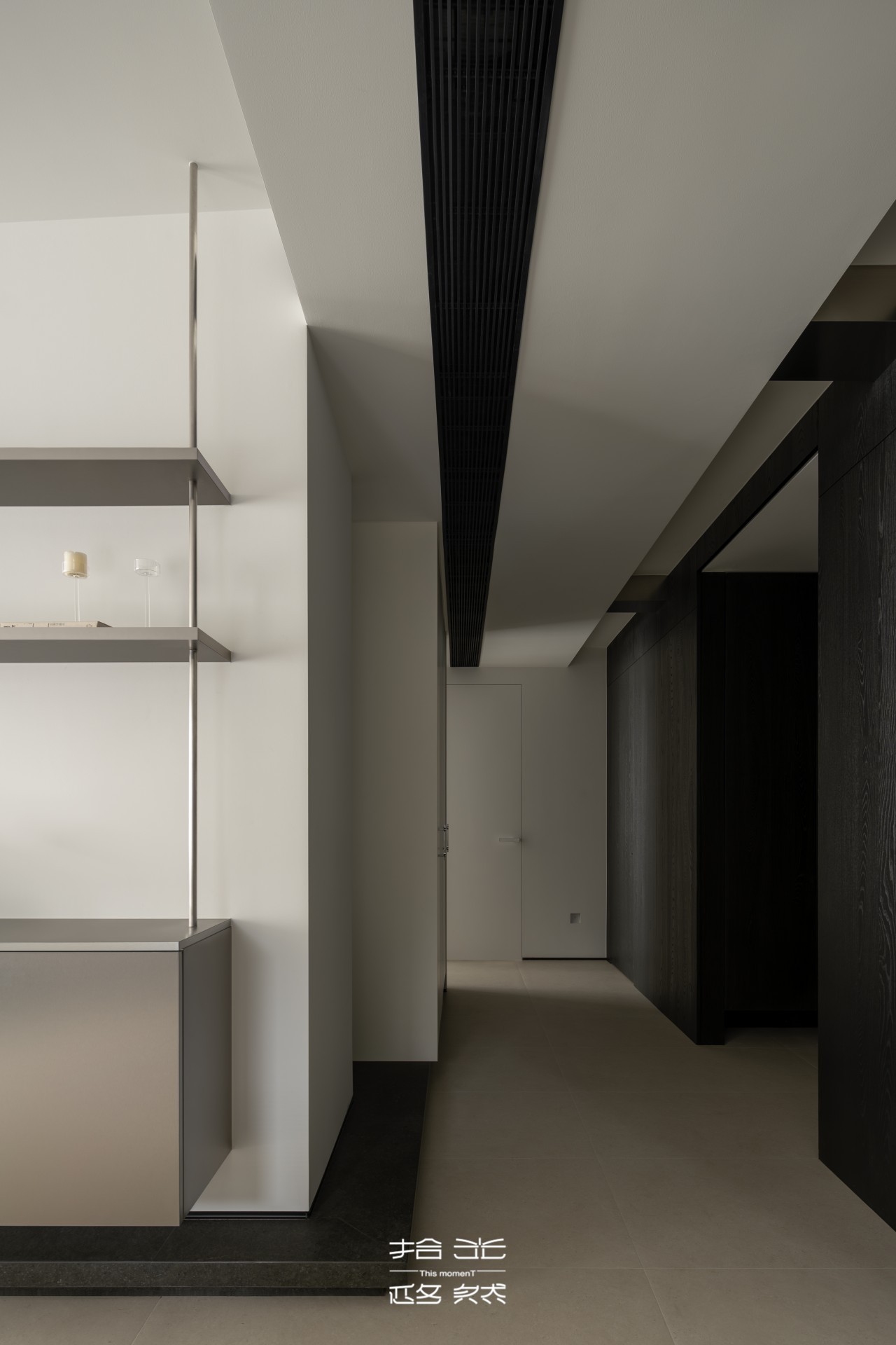 玄关是家的第一面镜子,既要藏住生活琐碎,也要映出美学品味。原始玄关采光不足、氛围单调,我们用“漏光隔断”为空间注入灵魂。