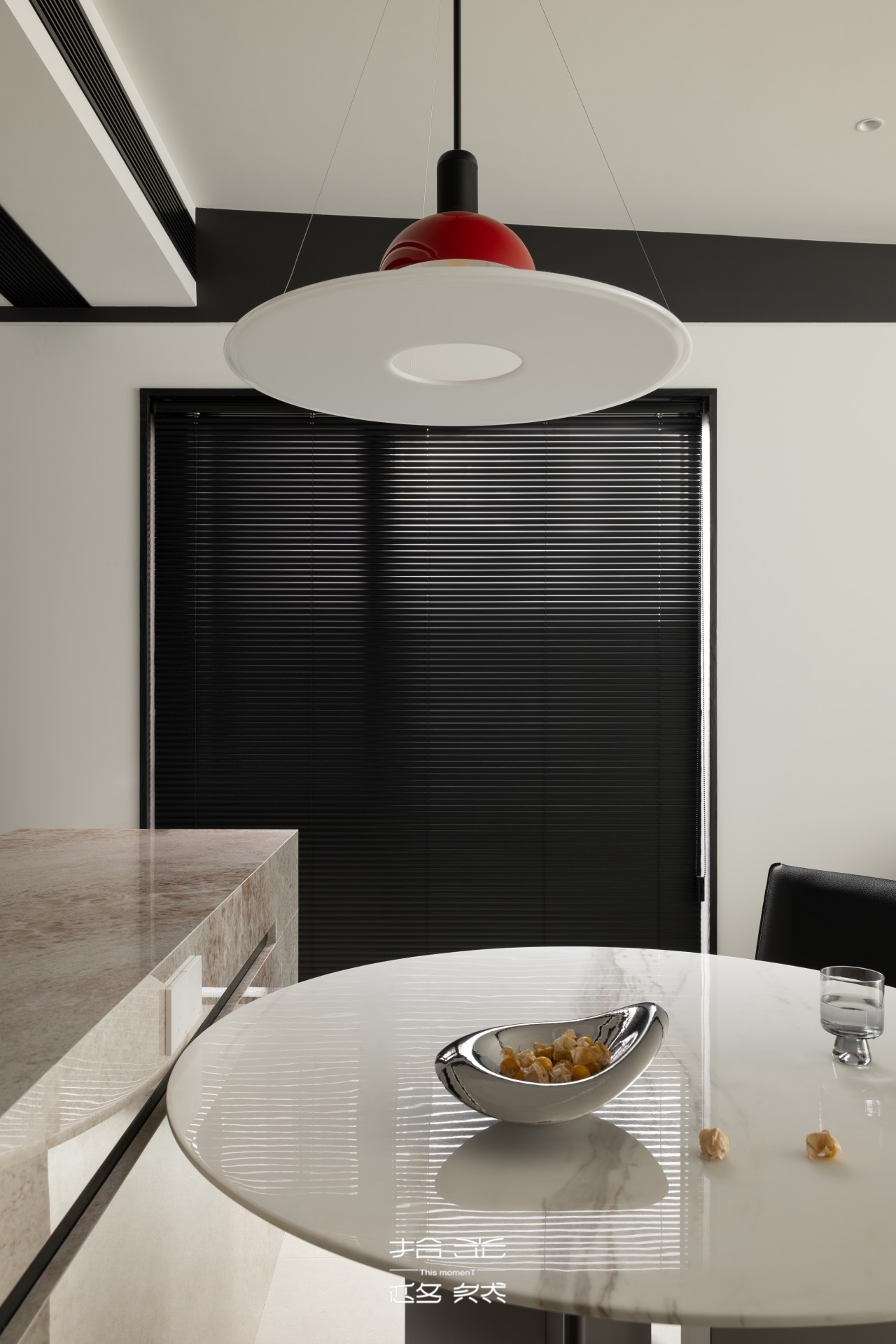 ④ 餐厨联动:原始的厨房较为封闭狭窄,通过口袋门将其变为半开放空间,餐厅岛台分担部分厨房功能,让餐厅厨房获得联动感。