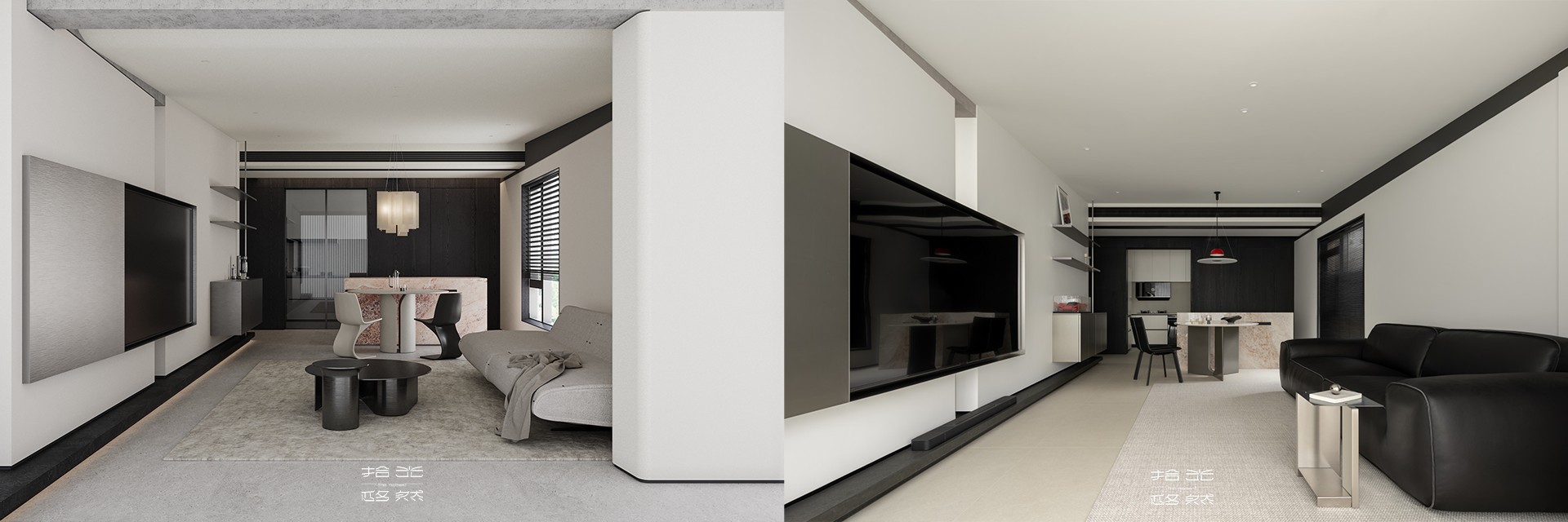 打破传统封闭格局,我们赋予空间流动性与连贯性——看似分隔的区域却暗藏呼应,营造出“隔而不断”的独特体验,为二人世界构建起松弛的空间。