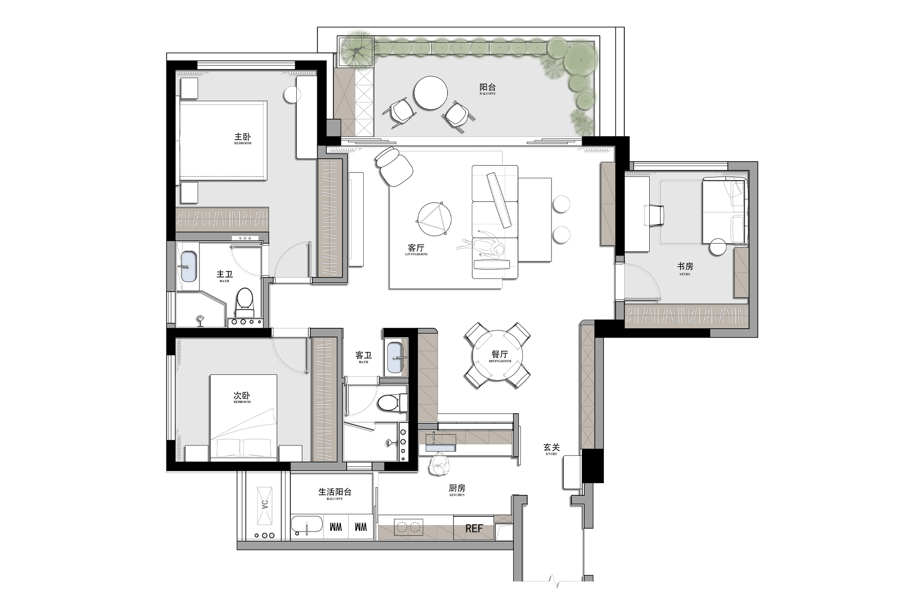 麓湖沄岸 135㎡ x 暖木承光,毛坯织就的生活肌理