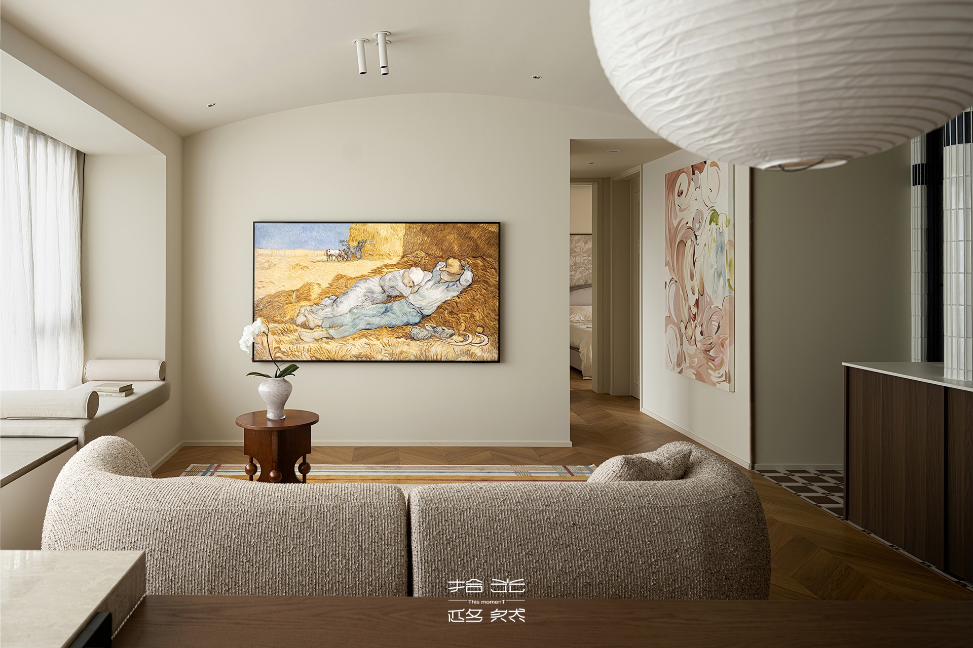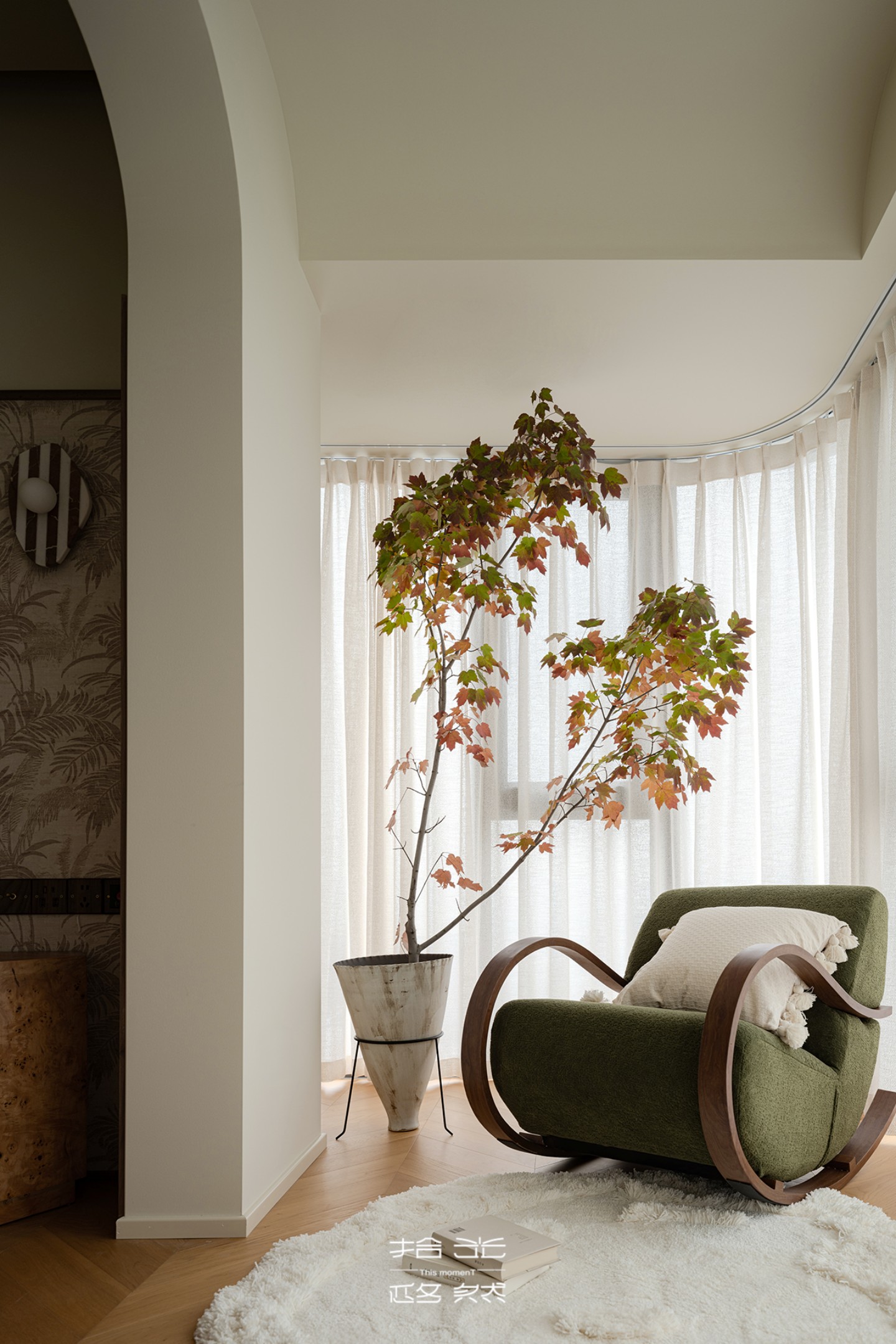 国宾上林栖 105㎡ x 弧形柔润 + 木质奶油,让超长飘窗与 270° 阳台漫溢 chill 松弛感