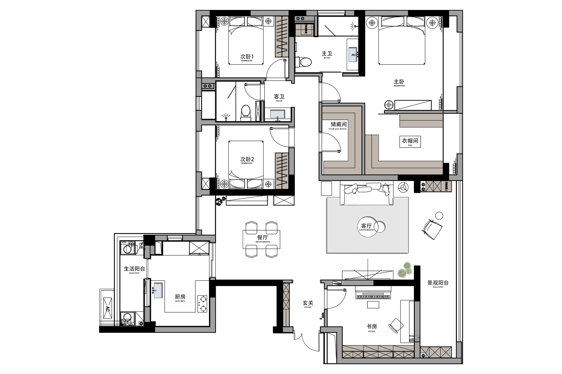 万锦熙岸 178㎡ x 暖棕复古 × 松弛混搭,把设计美学揉进每一寸精装空间