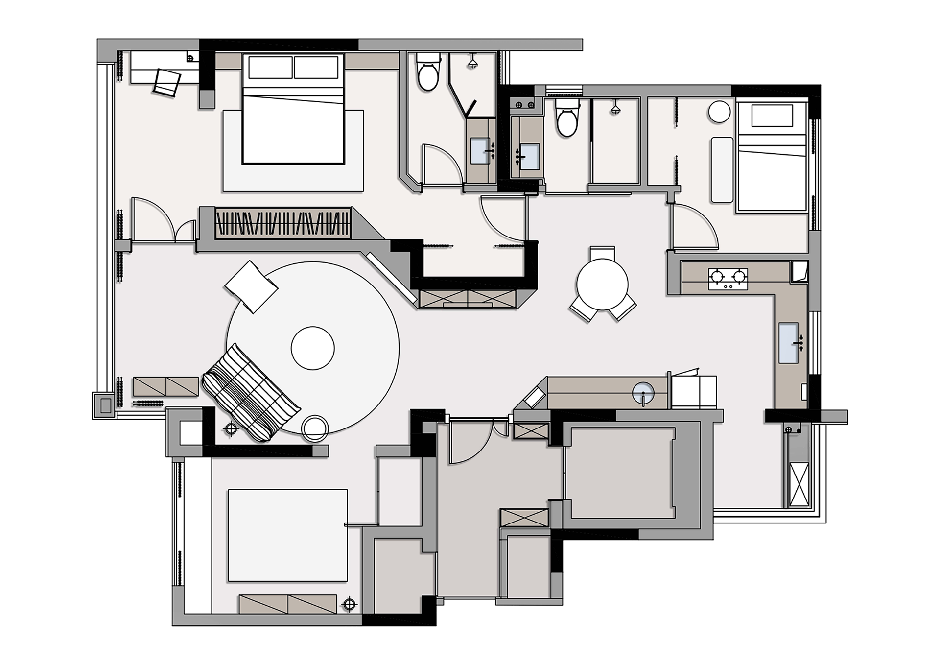 我们以动线优化、极致收纳、情绪氛围为核心,从 0 到 1 重构空间秩序,针对原始户型动线不畅、功能零散、尺度局限等痛点,通过平面重构、功能升级与风格统一,为屋主打造温柔治愈、舒适通透的理想居所。 整体以简约松弛为基调,用柔和色调与自然材质营造安静气场,优化全屋出入、家务、起居动线,打造全场景就近式隐形收纳,不做浮夸造型、不追网红潮流,让每一处设计都贴合生活、承载情绪,让家从空白毛坯,蜕变为好住、爱住、越住越治愈的安心港湾,让每一次归家,都是奔赴温柔与心安。