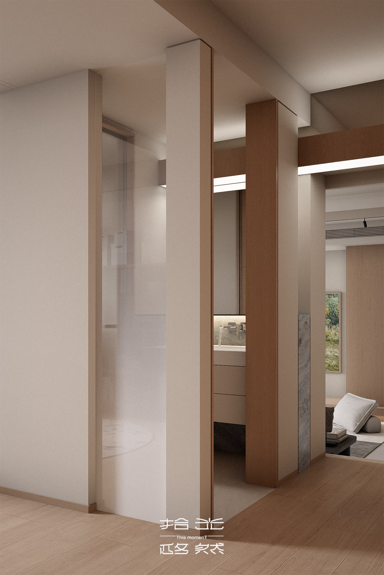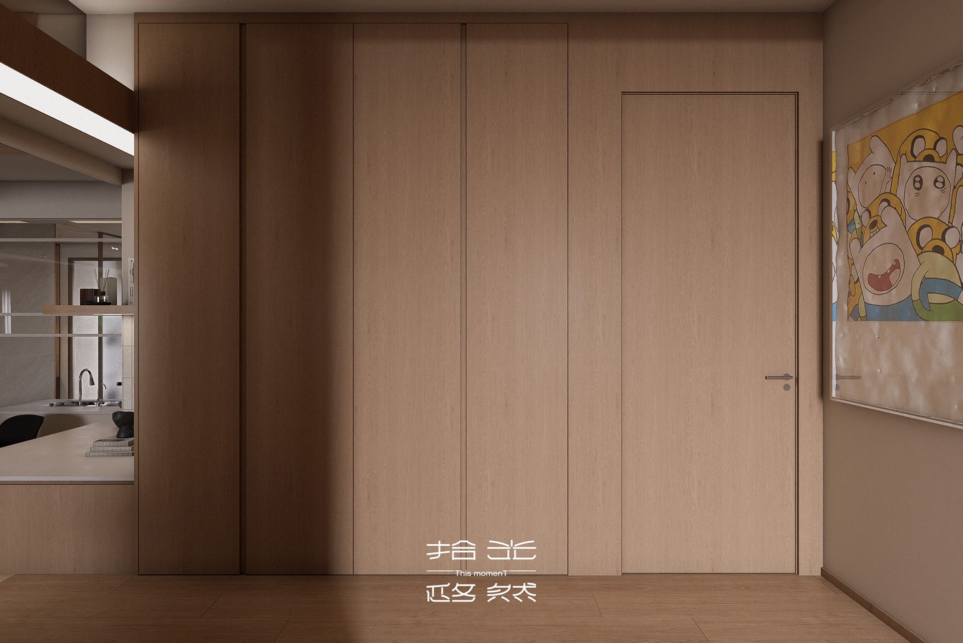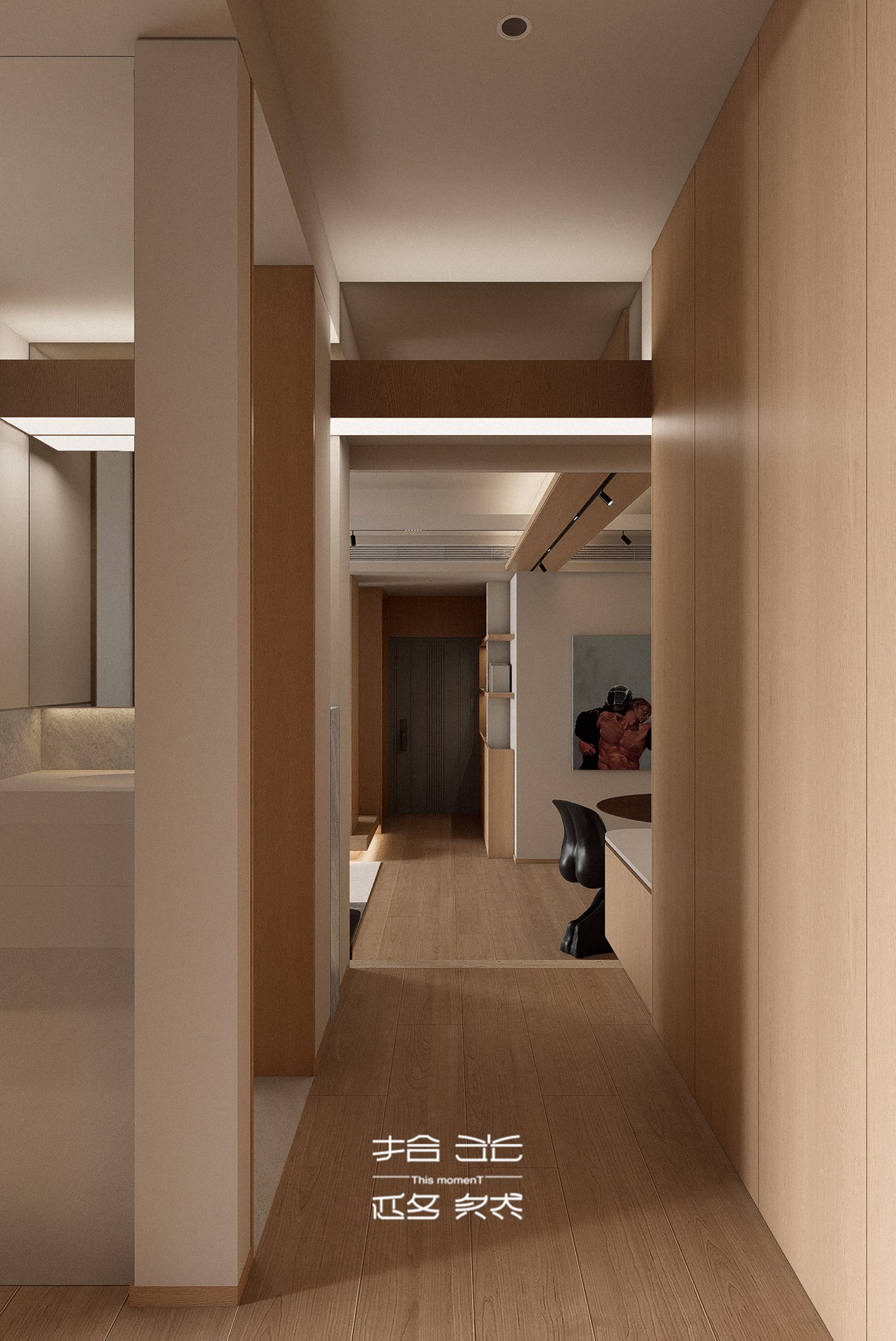 这套 155㎡的旧房改造项目,我们以「去繁就简、回归本真」为核心,打破原有空间的刻板格局,用温润木色与低饱和柔色为基底,让光与风在空间里自由流动,为三口之家打造一处无压、舒适、充满生活温度的疗愈居所。 原始户型的封闭隔墙,割裂了客餐厅与厨房的互动性,也压缩了公共空间的采光与尺度。我们拆除了不必要的墙体,将餐厨、客厅、书房等功能区以开放式或半开放式的方式串联,打造出洄游式的 LDK 一体化公区。浅木色的地台与墙面、温润的橡木柜体,在统一的材质语言里,弱化了空间的边界感;无主灯设计搭配线性灯与轨道灯,让自然光与人工光交织,在一天中呈现出柔和的光影层次,也让整个家的氛围更显松弛。