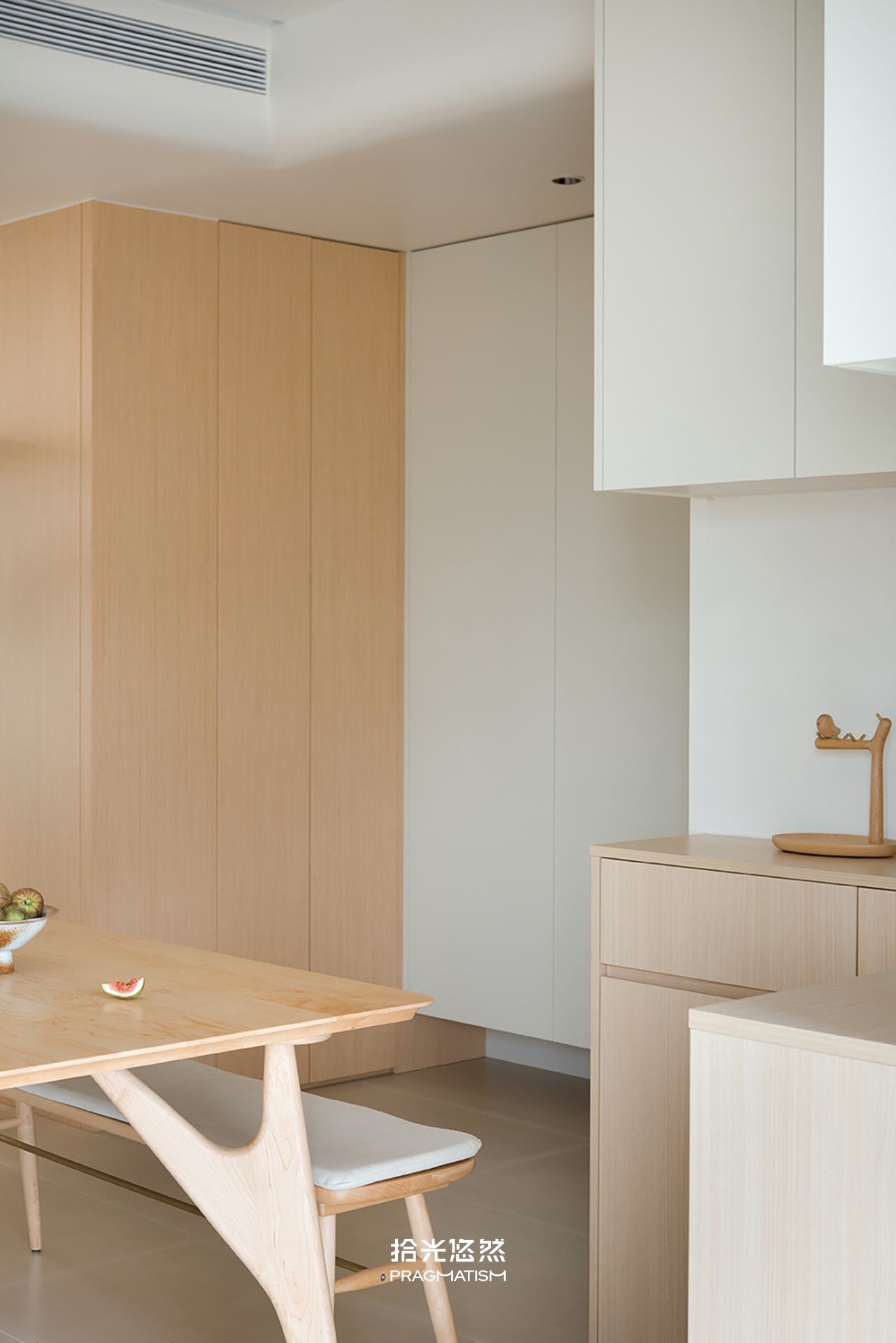 在这套项目的业主夫妻,十分了解自己的生活需求和个人喜好。他们追求简约、原木和轻松舒适的生活,这为设计师提供了明确的设计方向。 设计师在规划房屋布局时,充分考虑了业主夫妻的生活习惯和日常活动。将客厅、书房、餐厅和厨房安排在同一个开放空间内,方便家庭成员之间的互动和交流。这种布局不仅增强了家庭的亲密感,还创造了更多的互动机会。 在选择家具和装饰时,设计师以简约和原木为主导。例如,选择简洁的家具设计,注重舒适性和实用性。原木元素的使用则增添了自然感和温馨氛围,让整个空间感觉更加轻松和舒适。