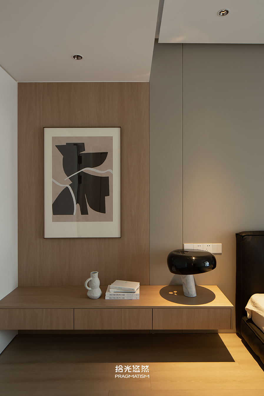 鞋柜中间的原木色隔断,不仅增加了整体造型的美观度,更是为了满足屋主一家在使用上的便利。在安装时,我们进行了特殊的加固处理,增加了隔断的承重量,使其能够直接当做换鞋凳使用。每次回家,只需直接坐下,便可轻松换鞋,让入门体验更加舒适和便捷。