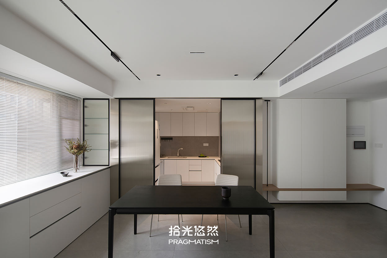 屋主一家平时三人就餐,不过在聚会时,人数可能会大量增长,于是我们为餐厅选用了可变餐桌,餐桌完全展开后可以满足10人就餐。