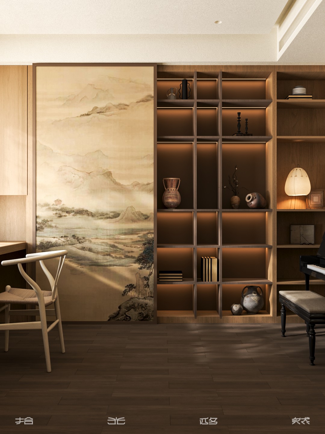 在当代生活与传统文化的交融碰撞中,本案以新中式为语境,打造出一方别具韵味的栖居之所。取木质为叙事主线,将古朴的纹理与温润的质感注入空间,每一块木材都诉说着岁月的故事;邀光影为雅集宾客,透过格栅、窗棂的精妙设计,让日光与灯火在空间中流转生姿。木与光相映成趣,传统元素与现代设计手法和谐共生,在方寸之间勾勒出含蓄雅致的东方意境,重新诠释新中式家居的独特魅力 。