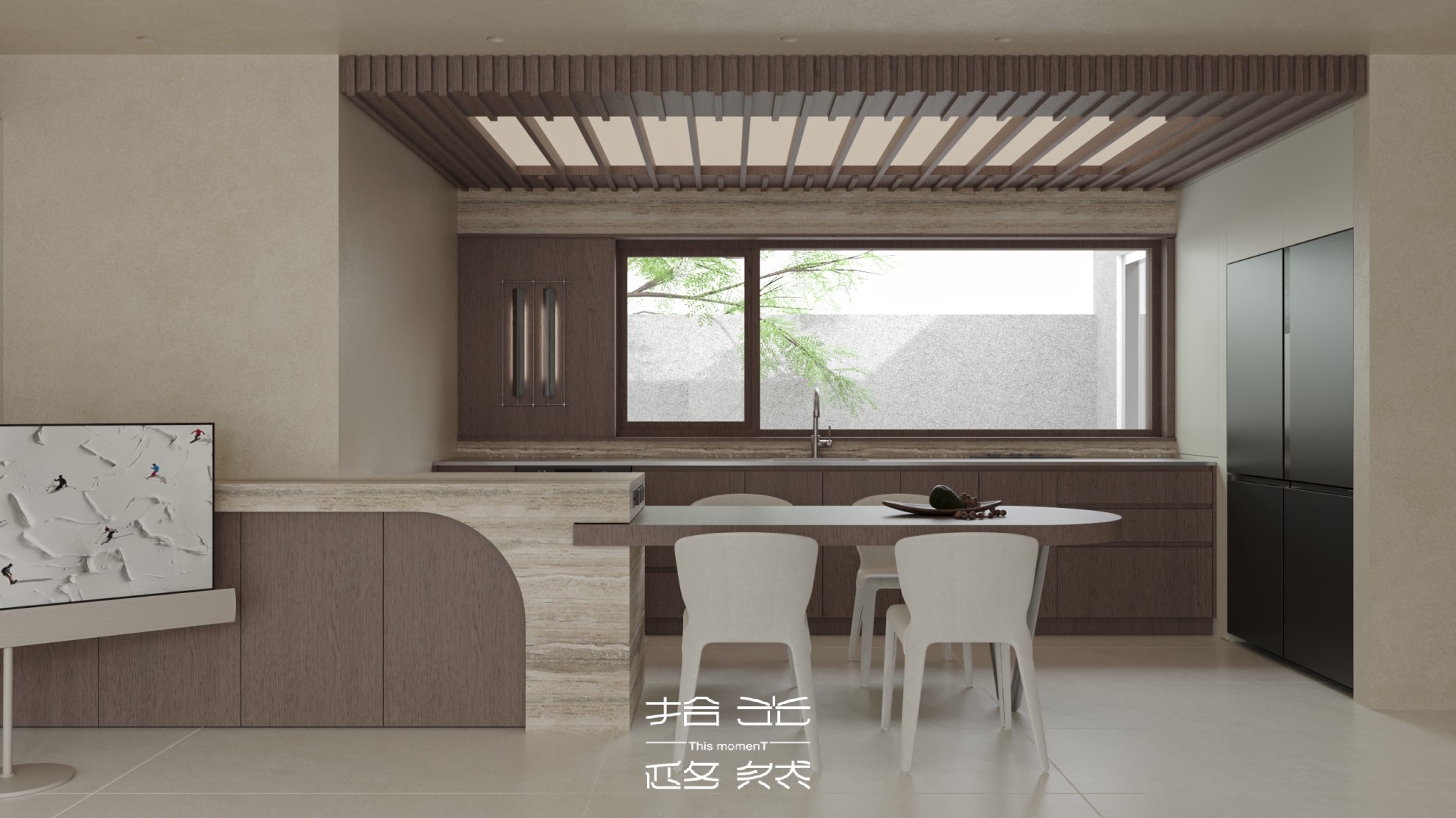 我们总在寻找一处能让身心真正舒展的容器。对于选择下叠户型的屋主夫妇而言,家不仅是物理空间的堆砌,更是一段与自我、与爱人对话的流动旅程。 在这个被阳光与绿植温柔浸润的空间里,我们试图打破「过度设计」的桎梏,以「80% 设计留白 + 20% 生活填充」的共创逻辑,让定制柜褪去压迫感的外壳,让家具成为自由生长的生命体,让每一寸角落都成为生活诗篇的注脚。