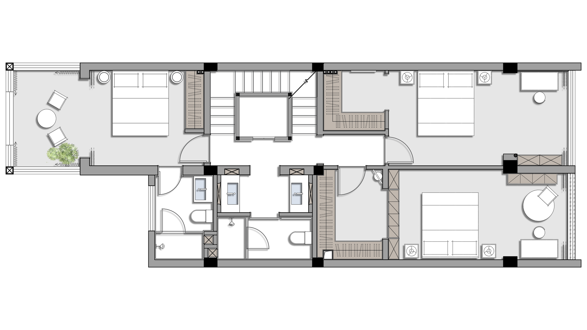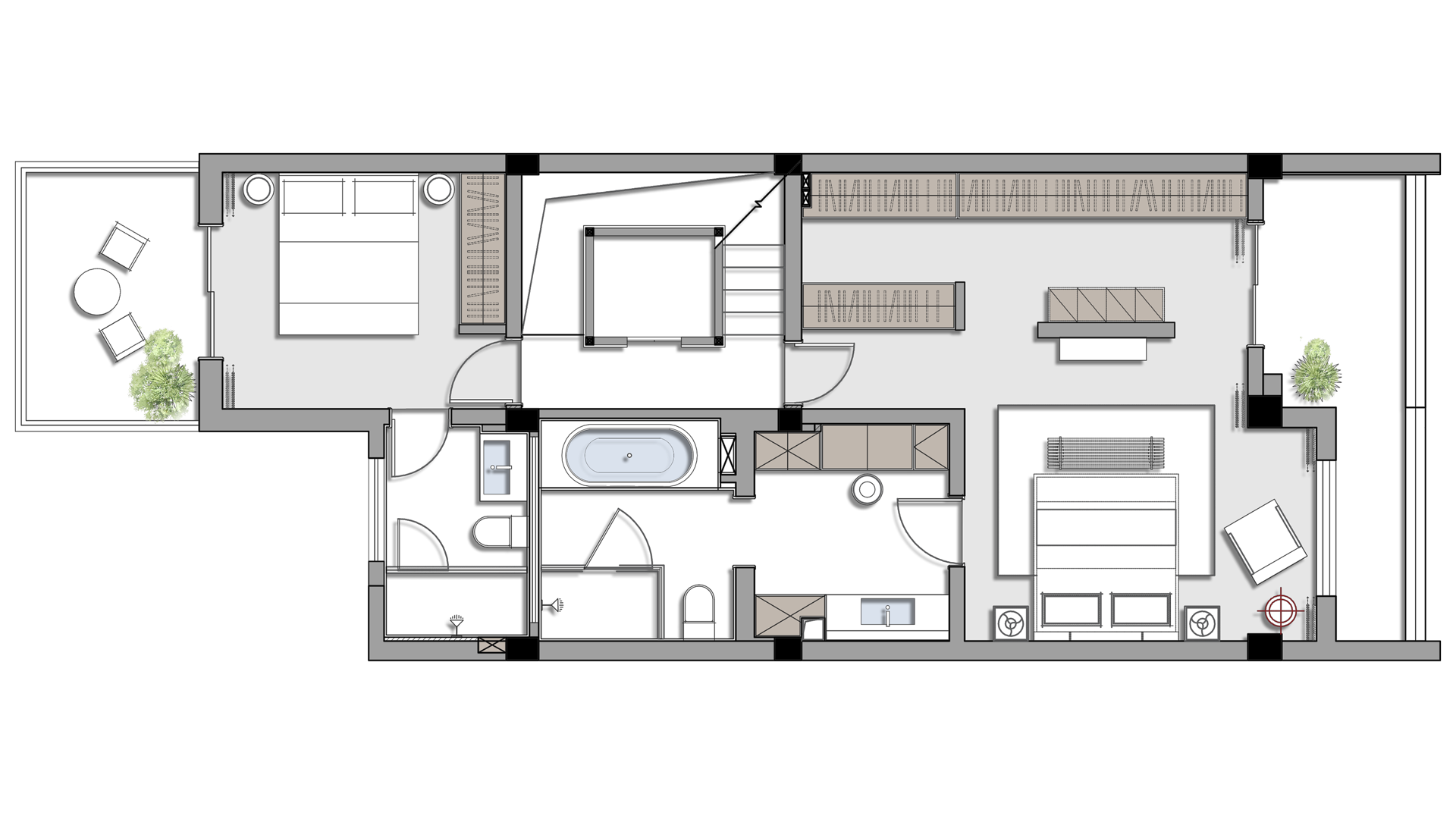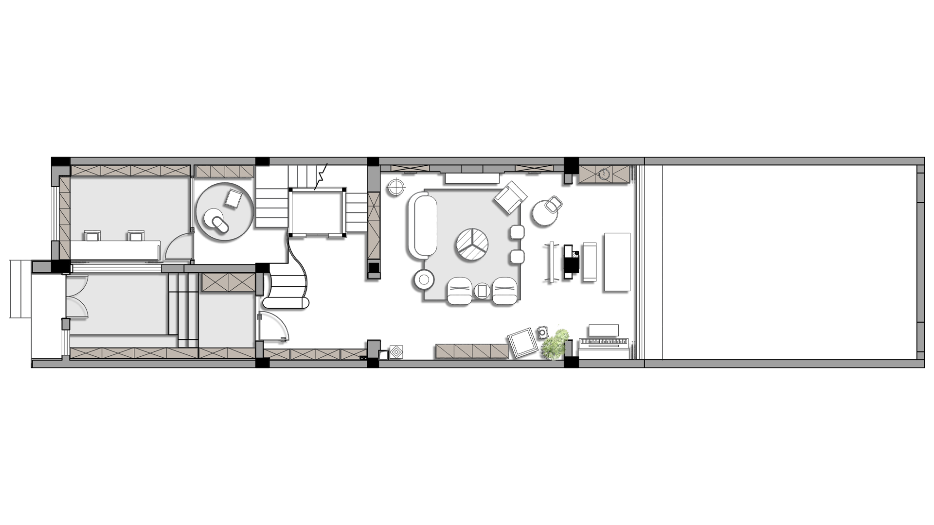③ 交通流线优化 :在原始楼梯交通基础上,进一步梳理各房间与公共区域之间的交通动线。确保各个空间之间的通行顺畅,避免出现过多的迂回和交叉,提高空间的使用效率。