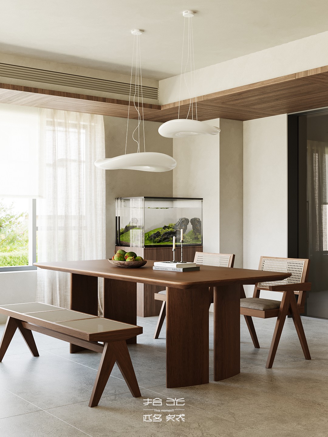 家,是自然的延伸。这套设计以原木为骨、素色为衣,对自然本真的追求,又带着闲适的空间诗意,客厅里,木纹与光影缠绵;卧室中,素墙衬着静谧;餐厨区,原木餐桌盛着烟火。每一处角落,都像从自然里 “长” 出来,把松弛感揉进日常,让回家变成一场与自然的温柔重逢 。