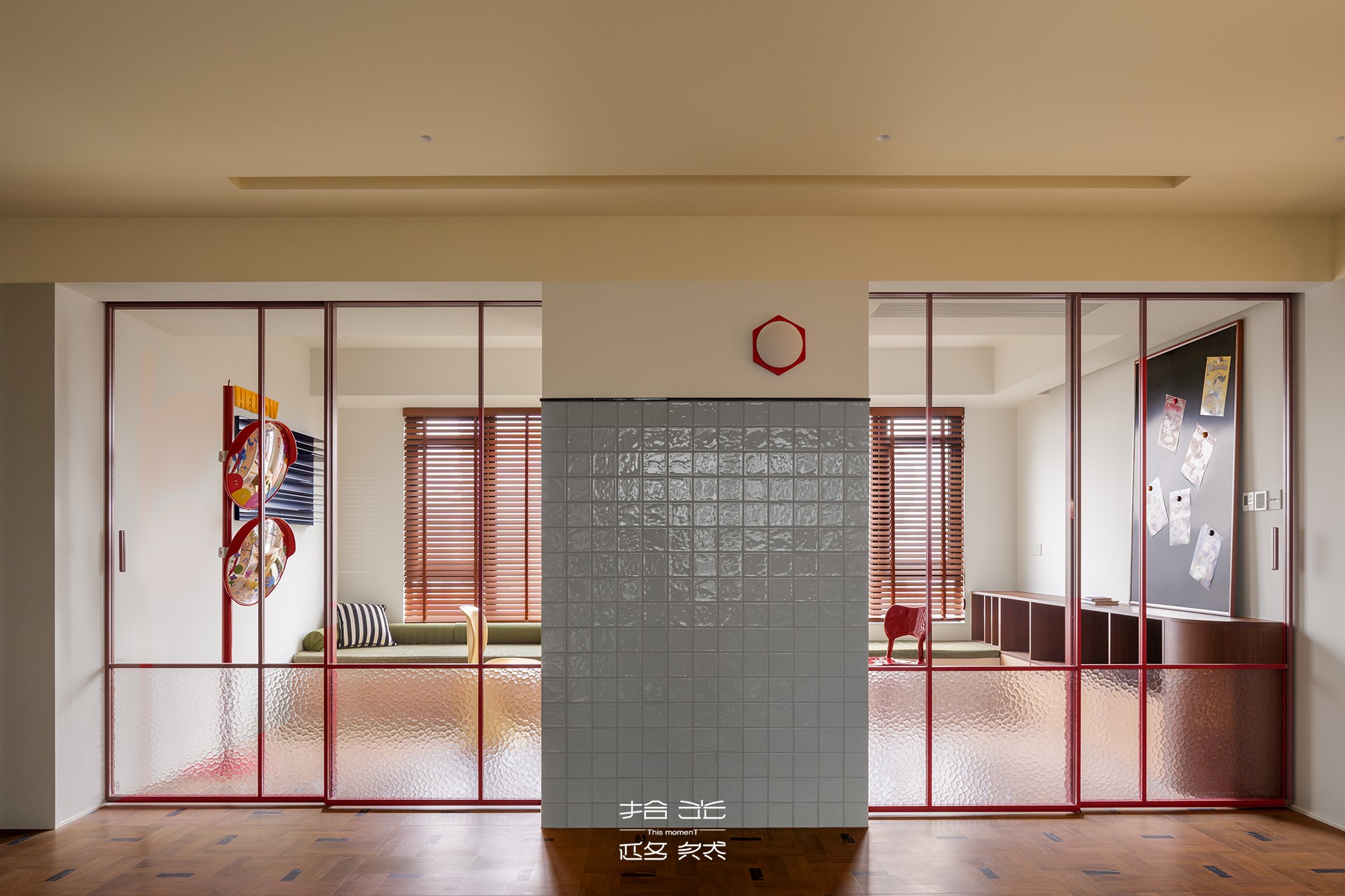 ③ 双书房布局:两间房间改为相互联通有能独立的双书房,满足屋主使用萃取的同时,增加休息区域,并且采用的玻璃移门,让整个公区的视野更为开阔;