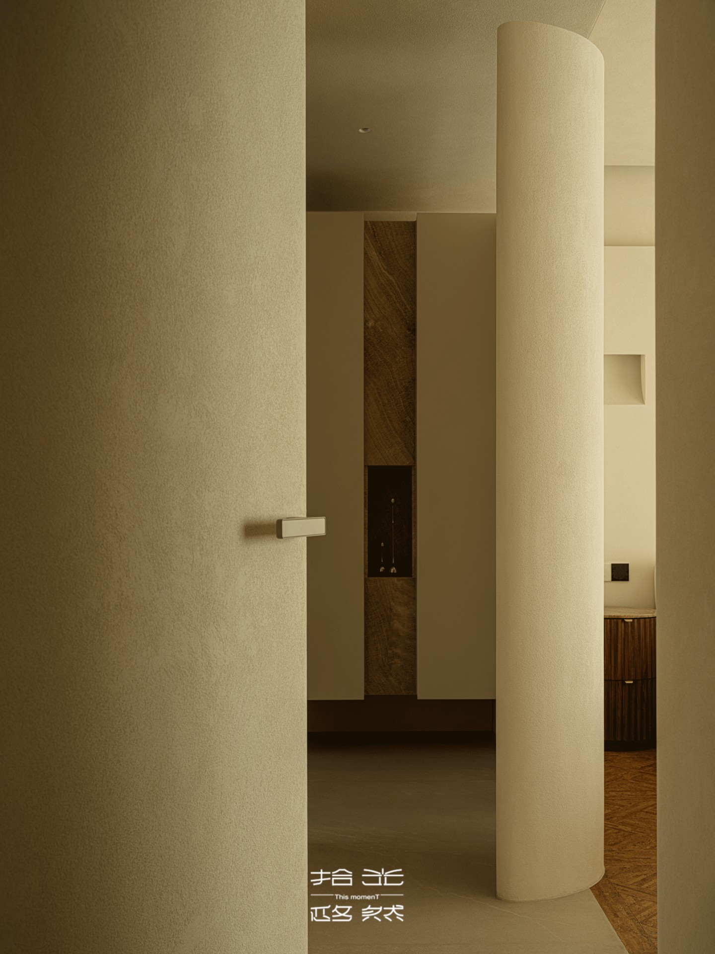 大地色系的低饱和质感,晕染出静谧的氛围,未来主义元素点缀其间,让前卫与古典在此交融。无需过多言语,这方小小玄关,早已用肌理与色彩,诉说着关于家的美学序章。
