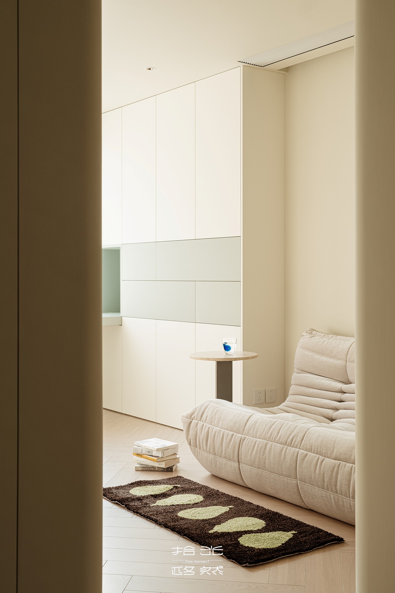 客厅打破以电视机为中心的固定模式,引入可移动的画境电视,屋主可依心情、光线或家人座位分布,随意调整电视位置,无论是窝在沙发角落,还是围坐在地毯上,都能找到最佳观影角度,让观影的乐趣,随生活节奏灵活切换。