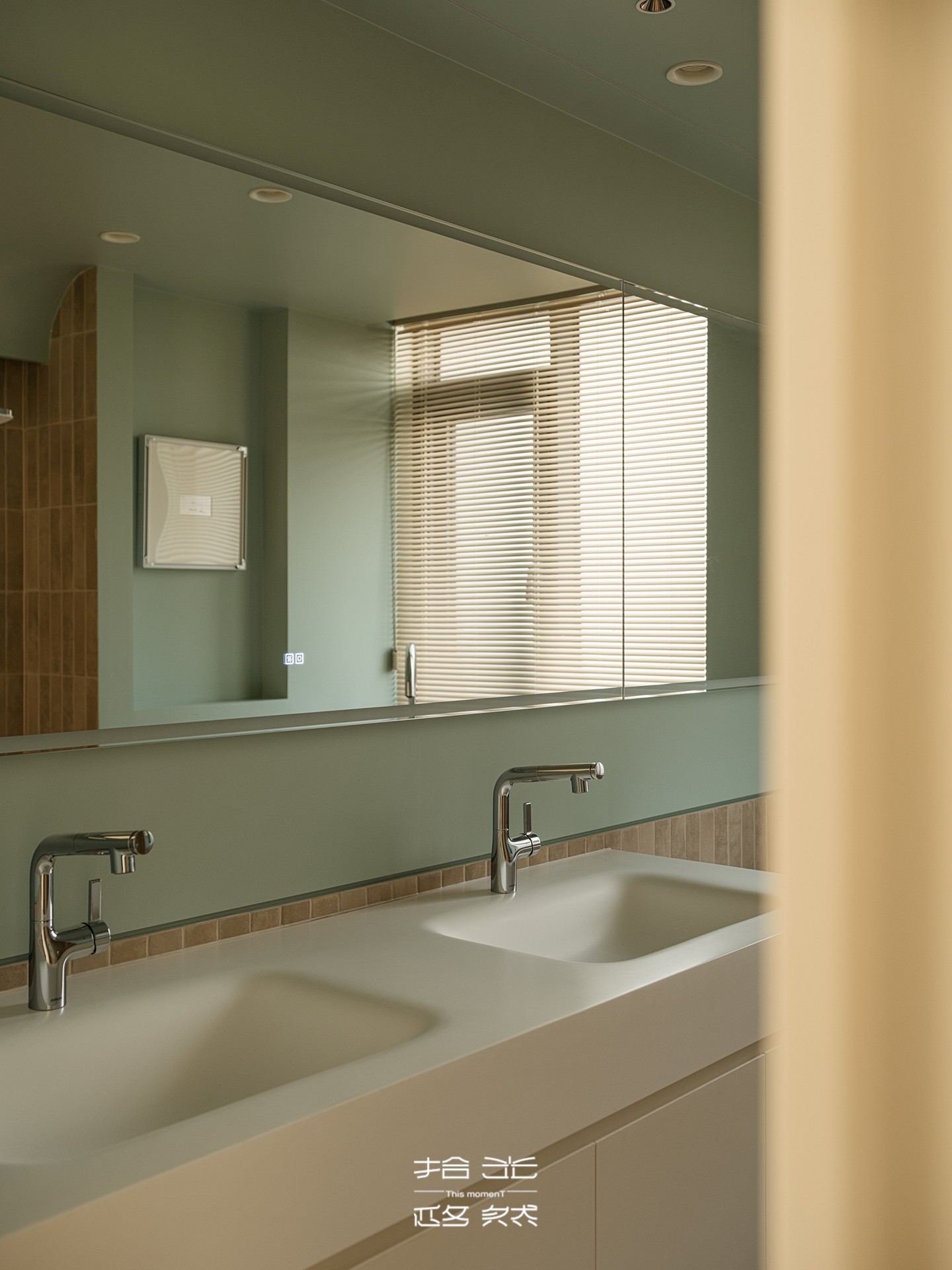 主卫采用双台盆、多分离的布局,极大提升使用效率,让夫妻二人晨起洗漱无需相互等待,动线顺畅又便捷。在这里,每一处设计都精准贴合屋主的需求,让奔波后的休憩,舒适又安心。