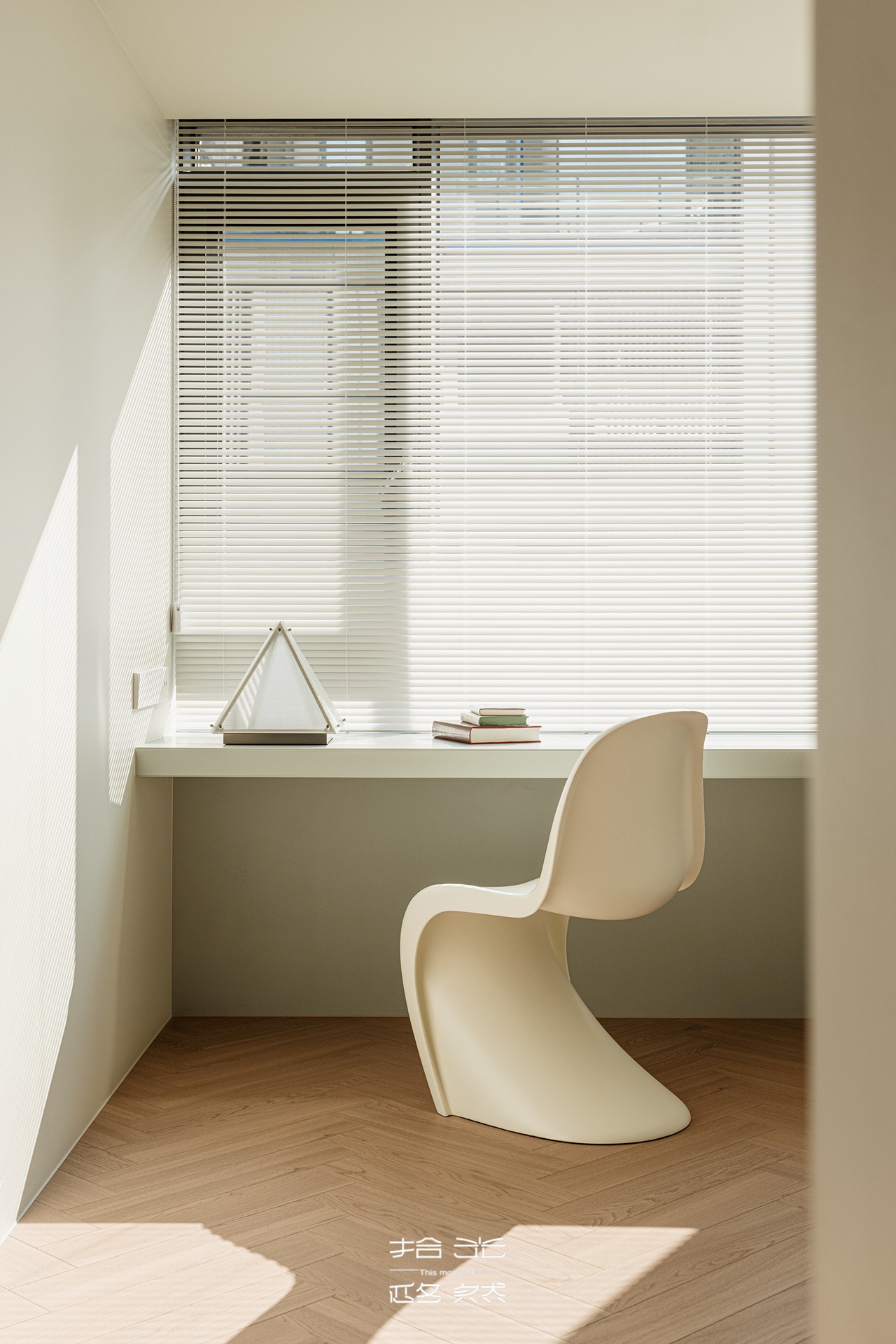 充足的自然光线透过窗户洒在桌面,营造舒适的办公与学习氛围,是屋主一家高效办公、静心学习的理想之地,让人可专注各自事务,又能随时交流协作,互不打扰又相互陪伴。